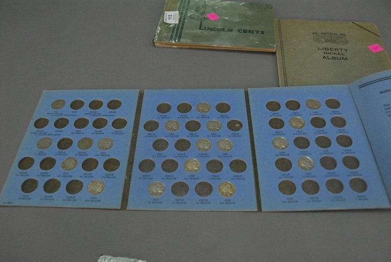 Lot 113: Group of three coin albums with Liberty nickels, Buffalo nickel 1913-1938, and Lincoln cents.