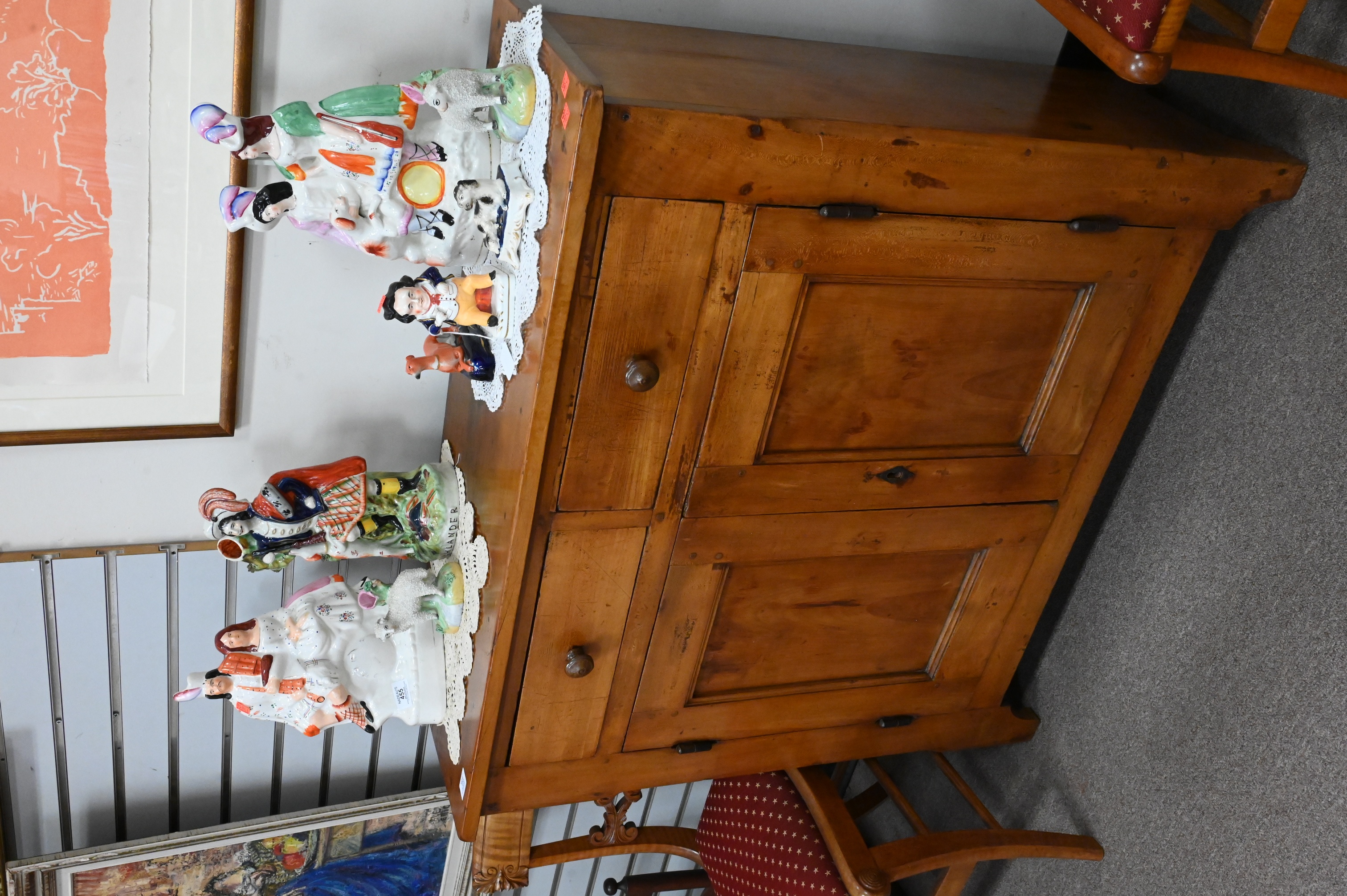 two drawers over two doors on cut out bracket feet, 18th century French, possibly Canadian