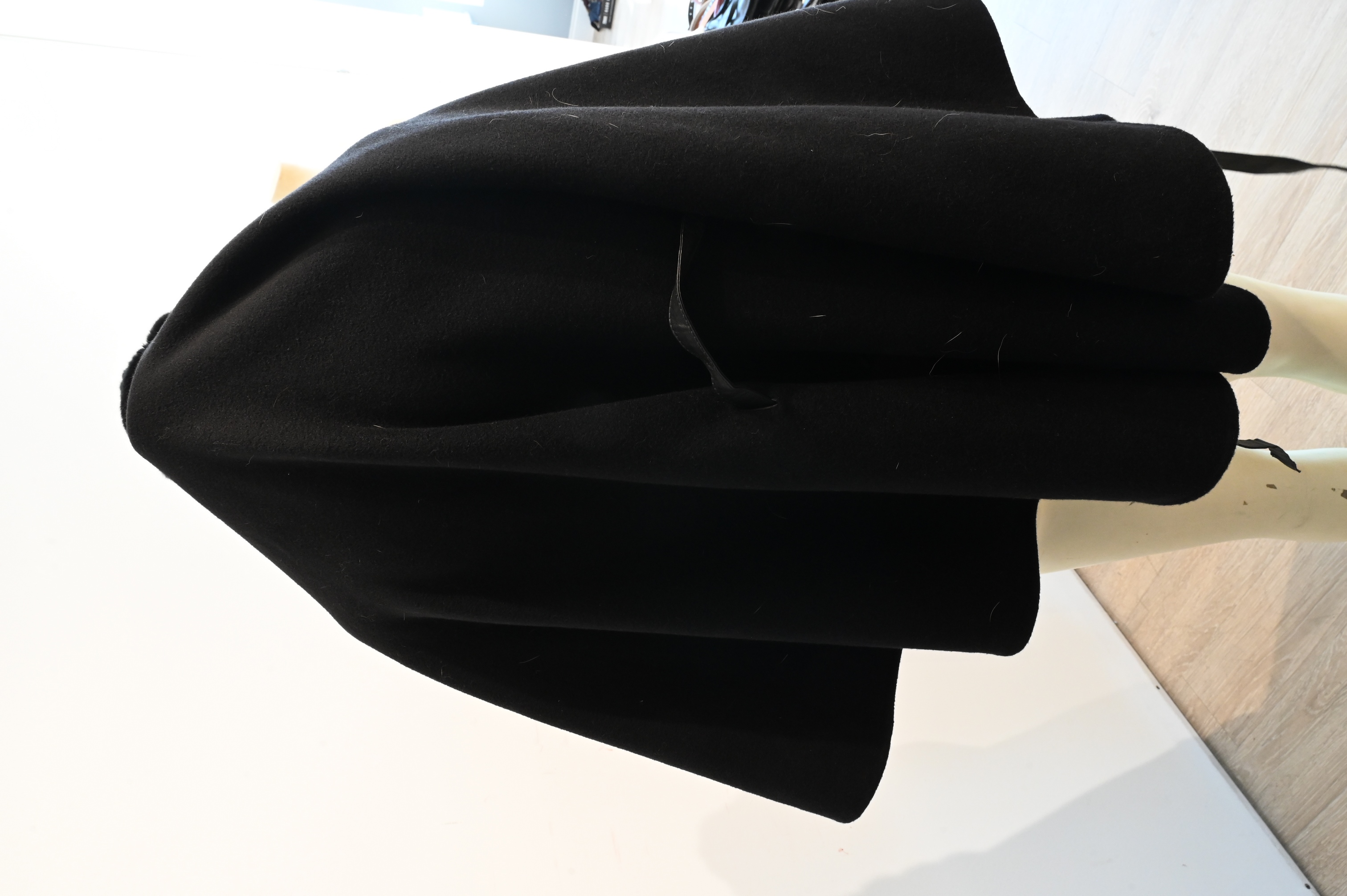 black cashmere and fur with lambskin leather pockets