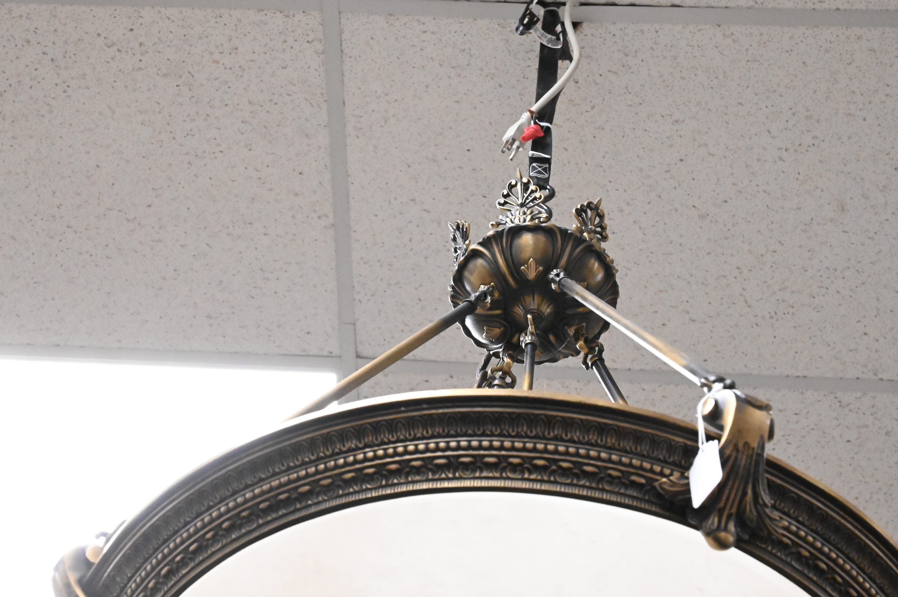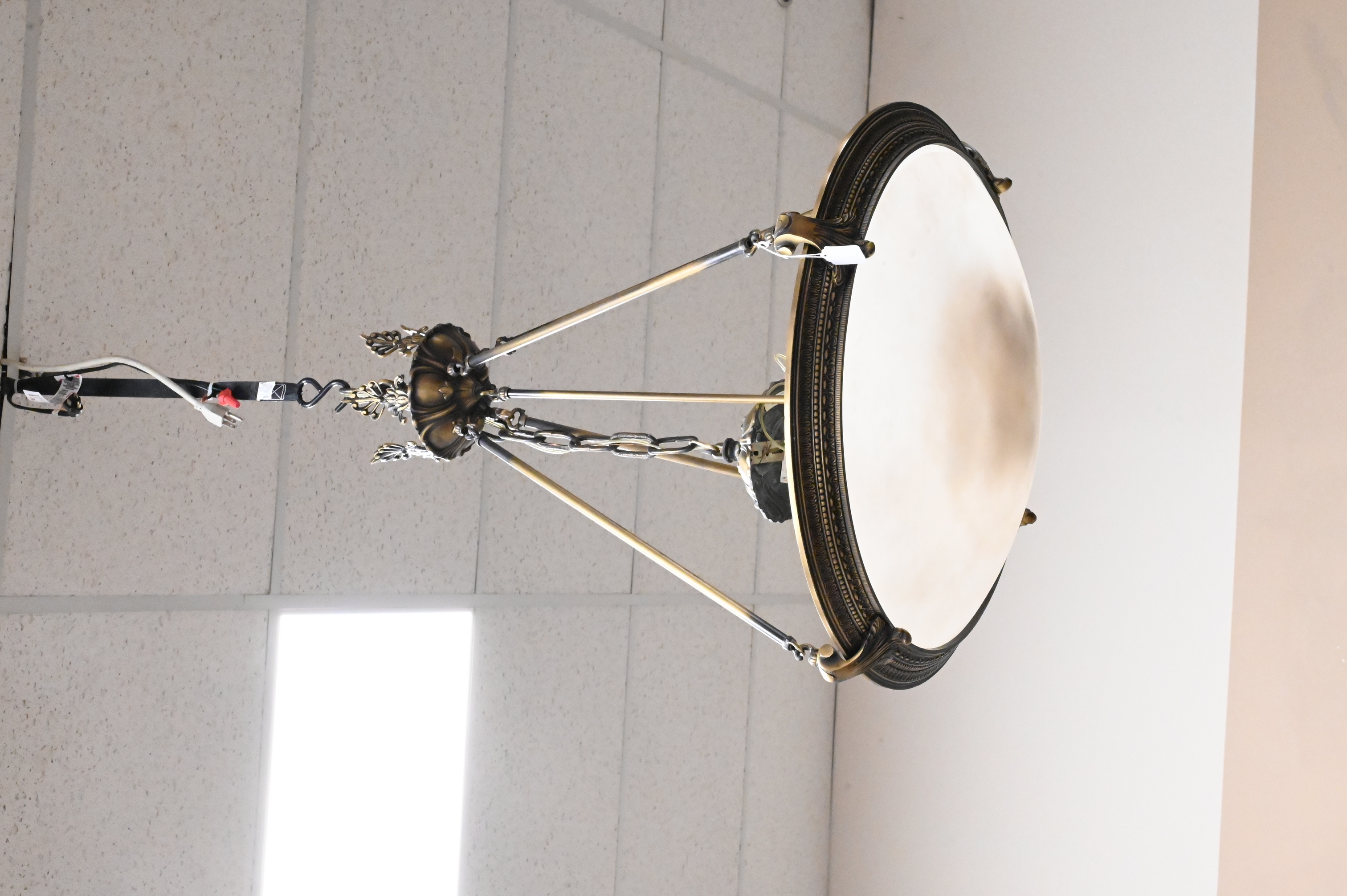 Lot 113: Pair of Bronze and Alabaster Drop Chandeliers