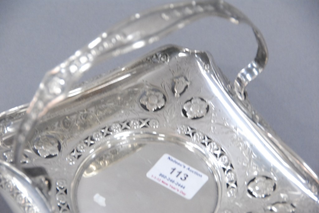 Sterling silver square basket with handle. 12.2 troy oz.