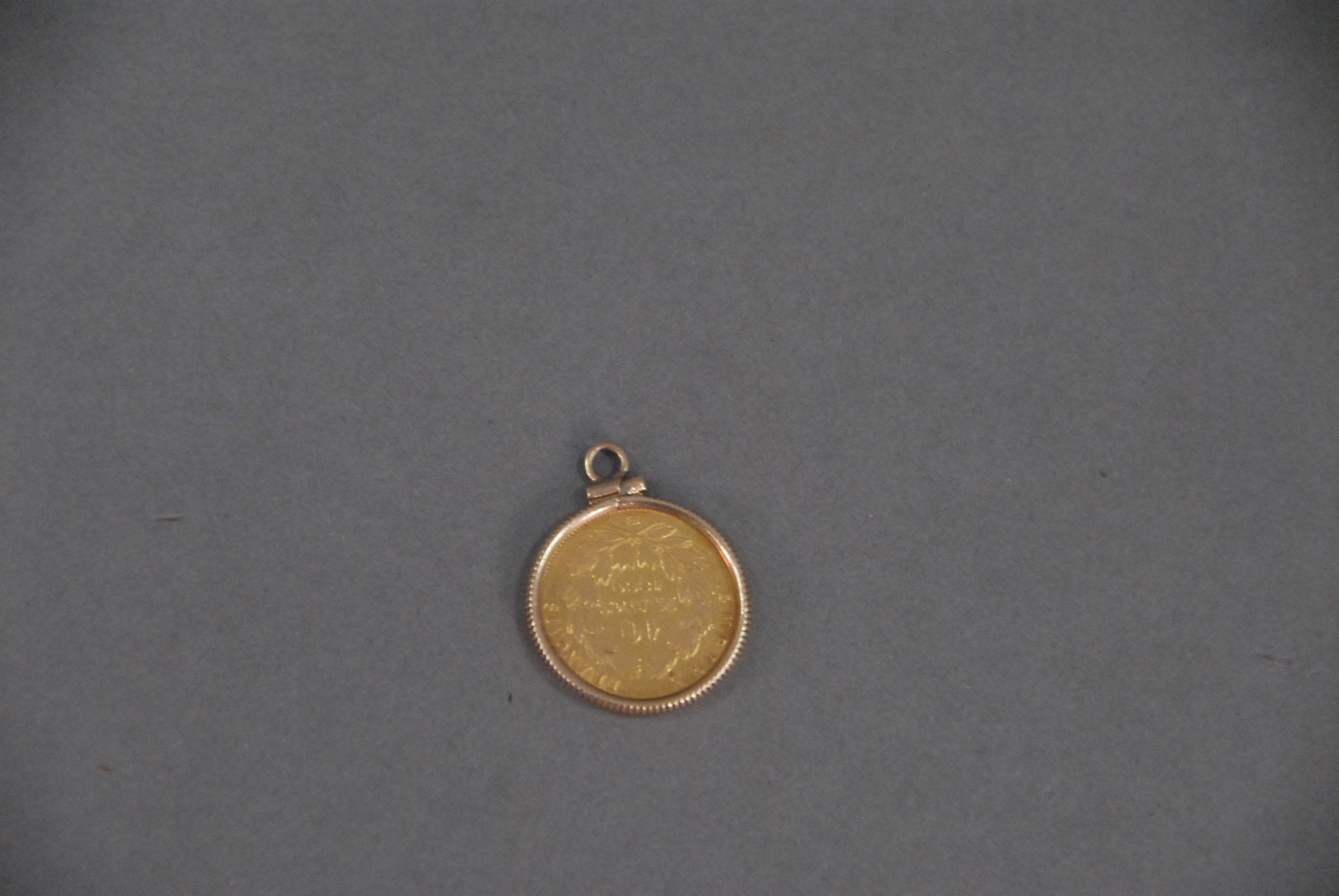 Ten Frank 1860 gold coin with frame, 4.1 grams.