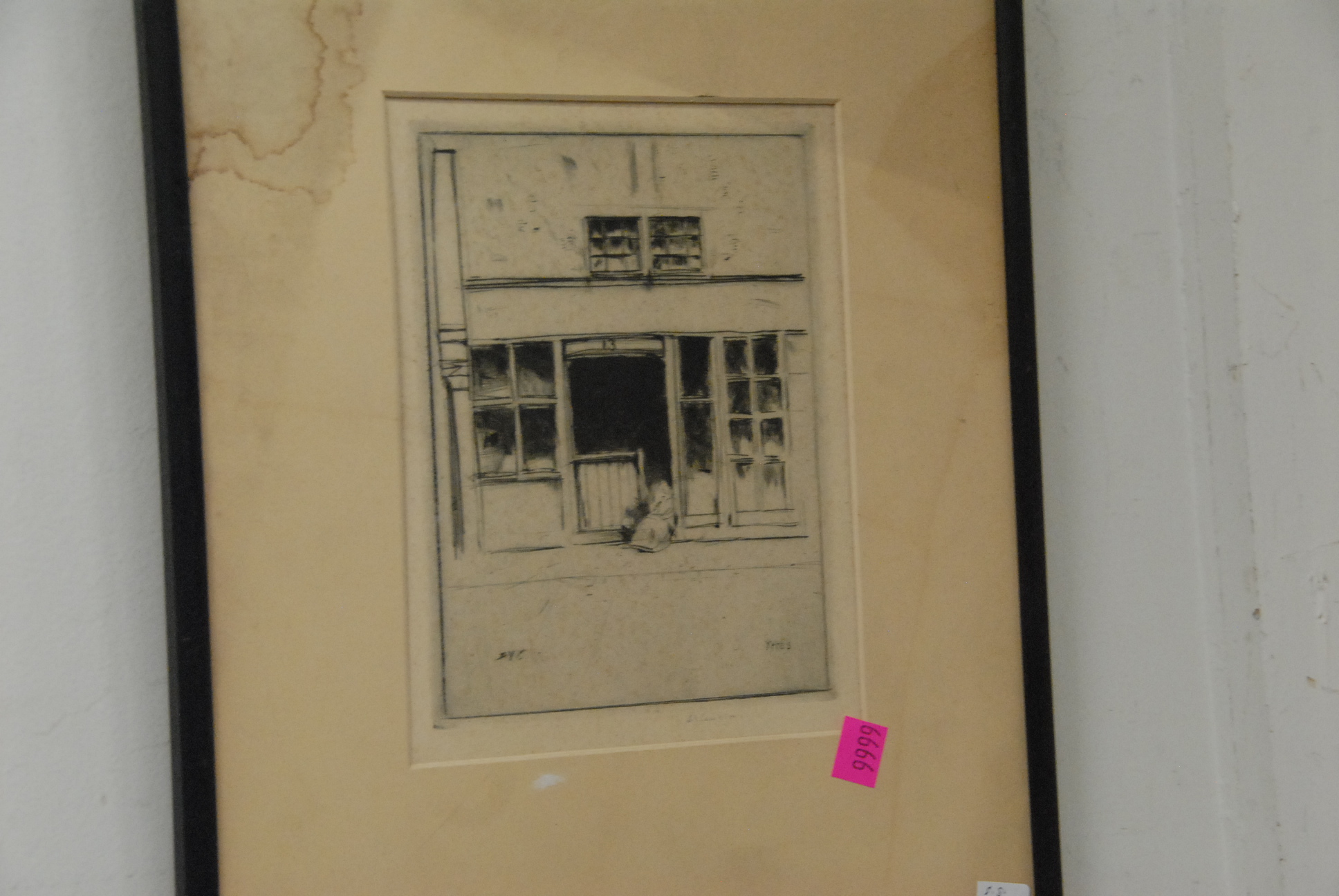 Lot 113: Three etchings to include Sir David Young Cameron 1865-1945 YPRES etching with Kennedy Prints label on reverse 8 x 6, Margorie …
