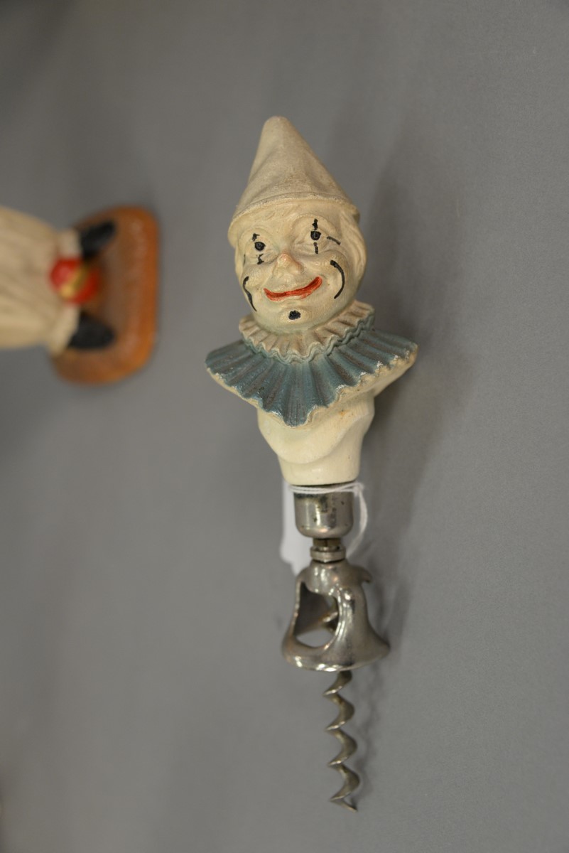Lot 113: Vintage Syroco painted wood figural clown corkscrew King New York label on bottom.ht. 8 3/4 in.