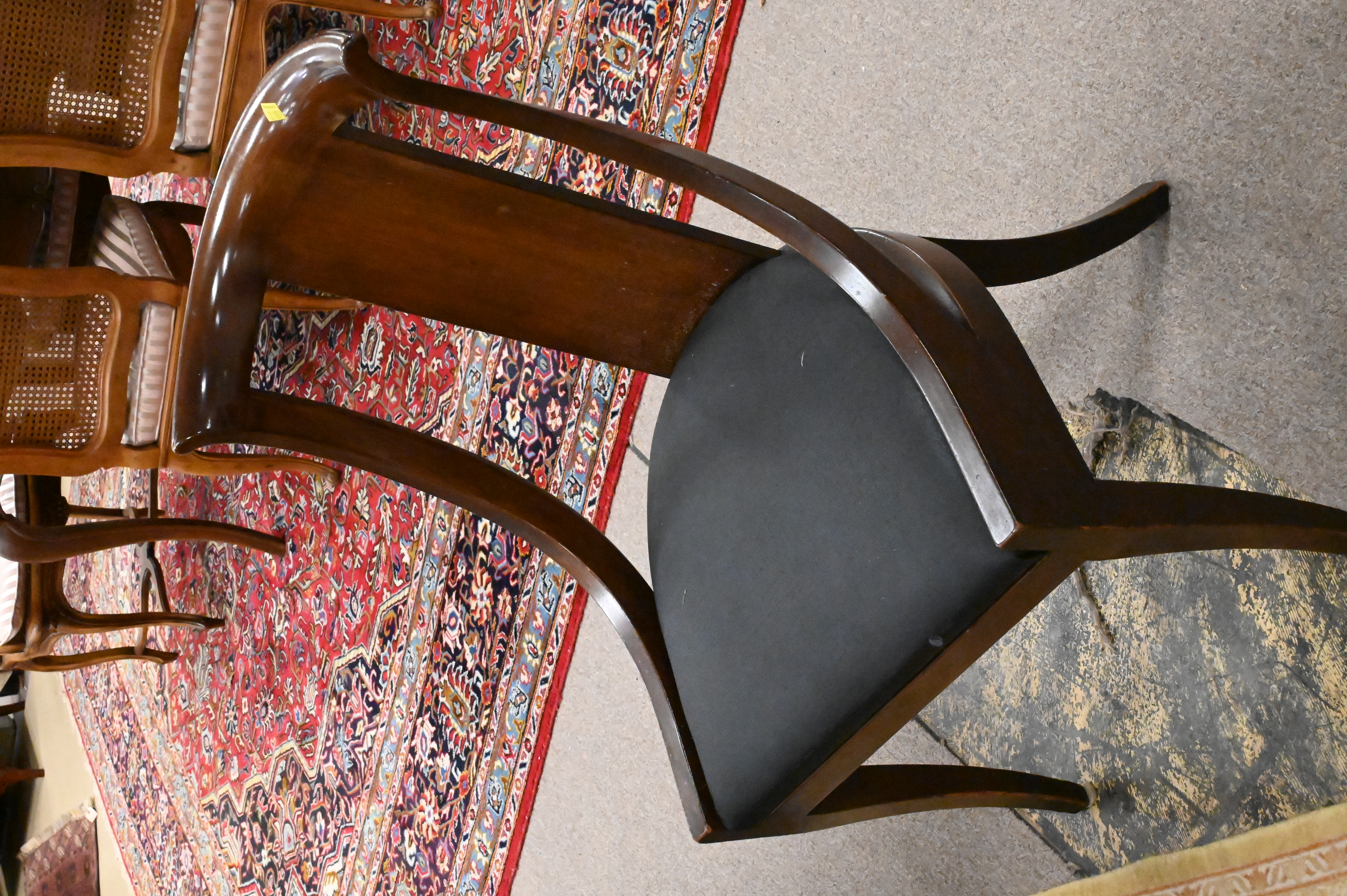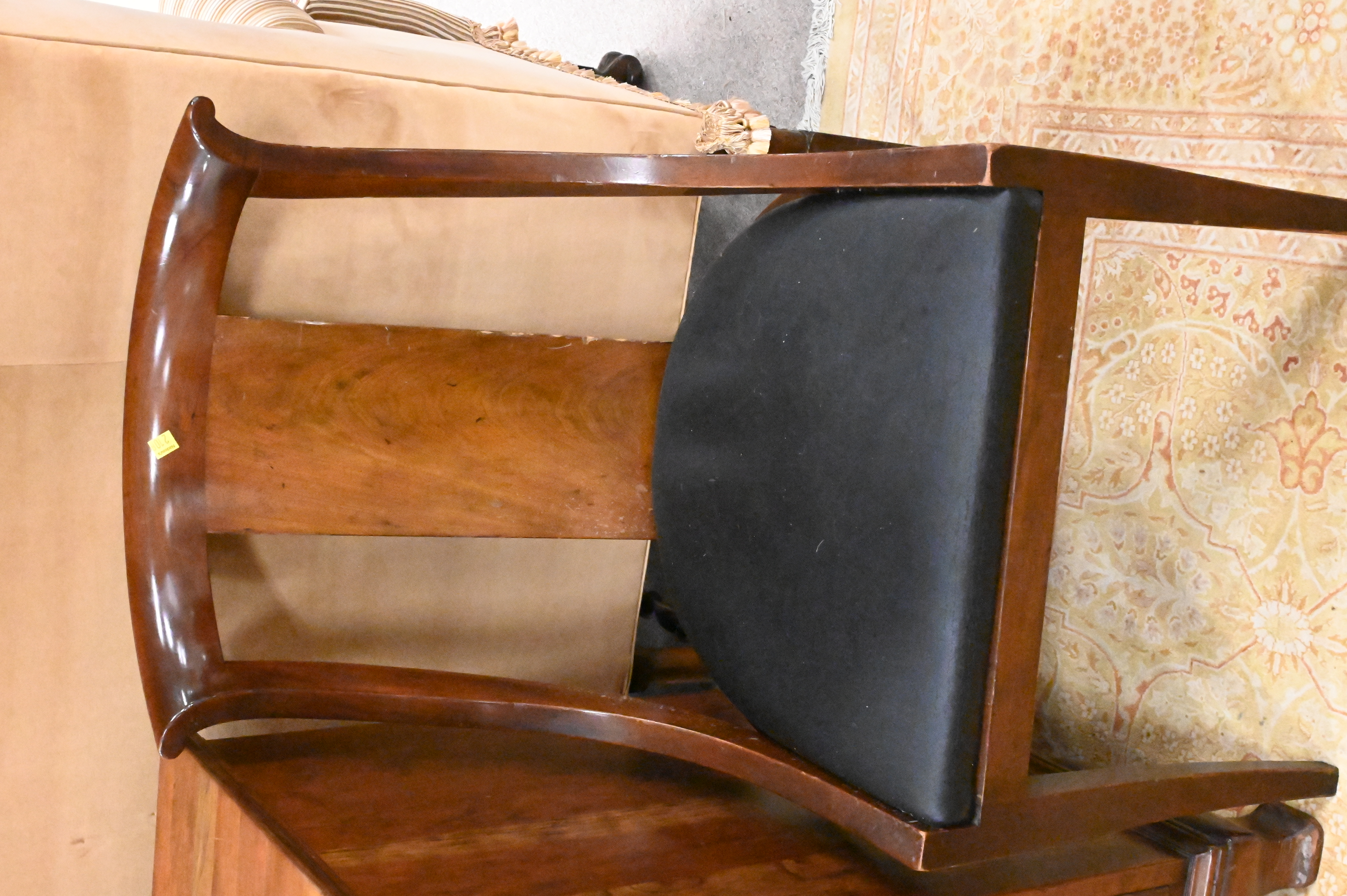 Set of 10 Regency Style Dining Chairs, to include 2 arm chairs and 8 side chairs, all with upholstered seats. Armchair height 35 inches, width 24 inches.