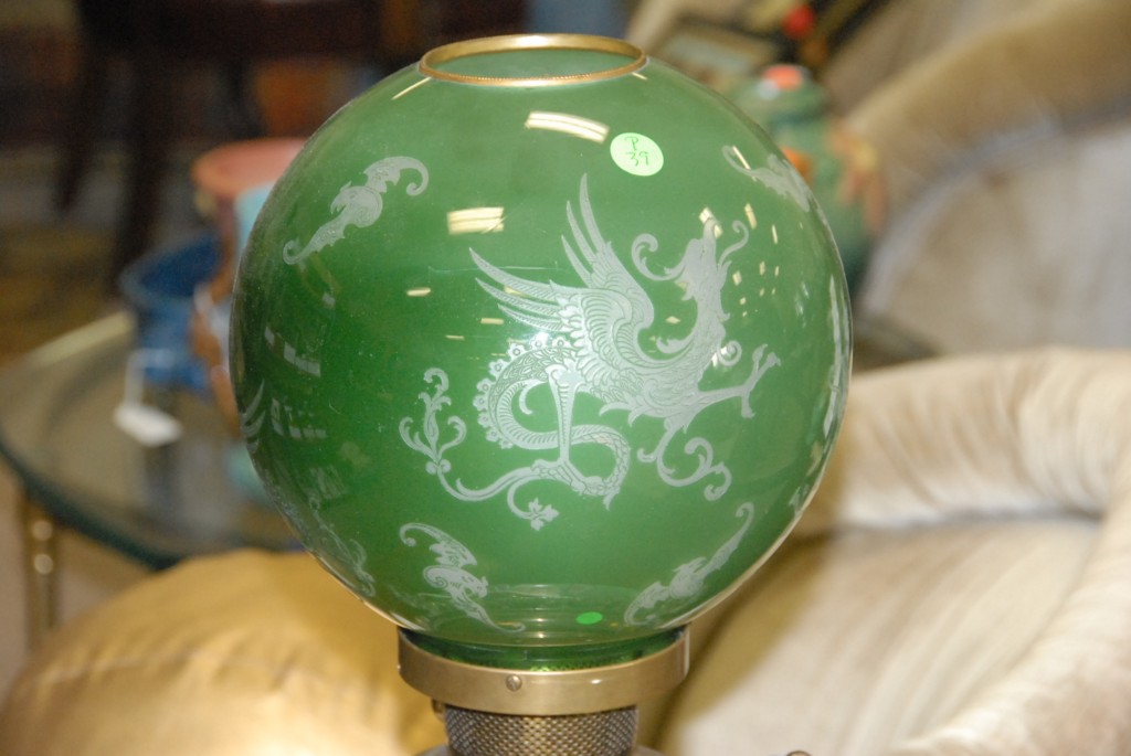 Victorian two drawer drop leaf stand along with Gone with the Wind lamp shade as is.
