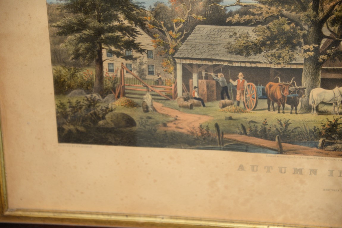CURRIER & IVES Autumn in New England Cider Making marked lower left Painted by G. B. Durrie marked lower right Currier & Ives Lith, N.Y. foxing and staining image size 14 5/8 x 24 7/8