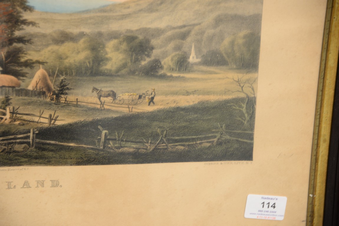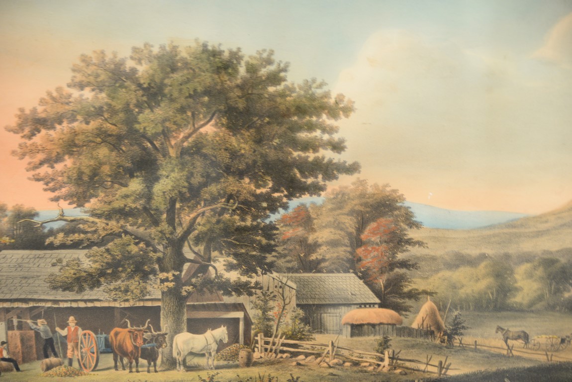 Lot 114: CURRIER & IVES Autumn in New England Cider Making marked lower left Painted by G. B. Durrie marked lower right Currier & Ives Lith, N.Y. foxing and staining image size 14 5/8 x 24 7/8