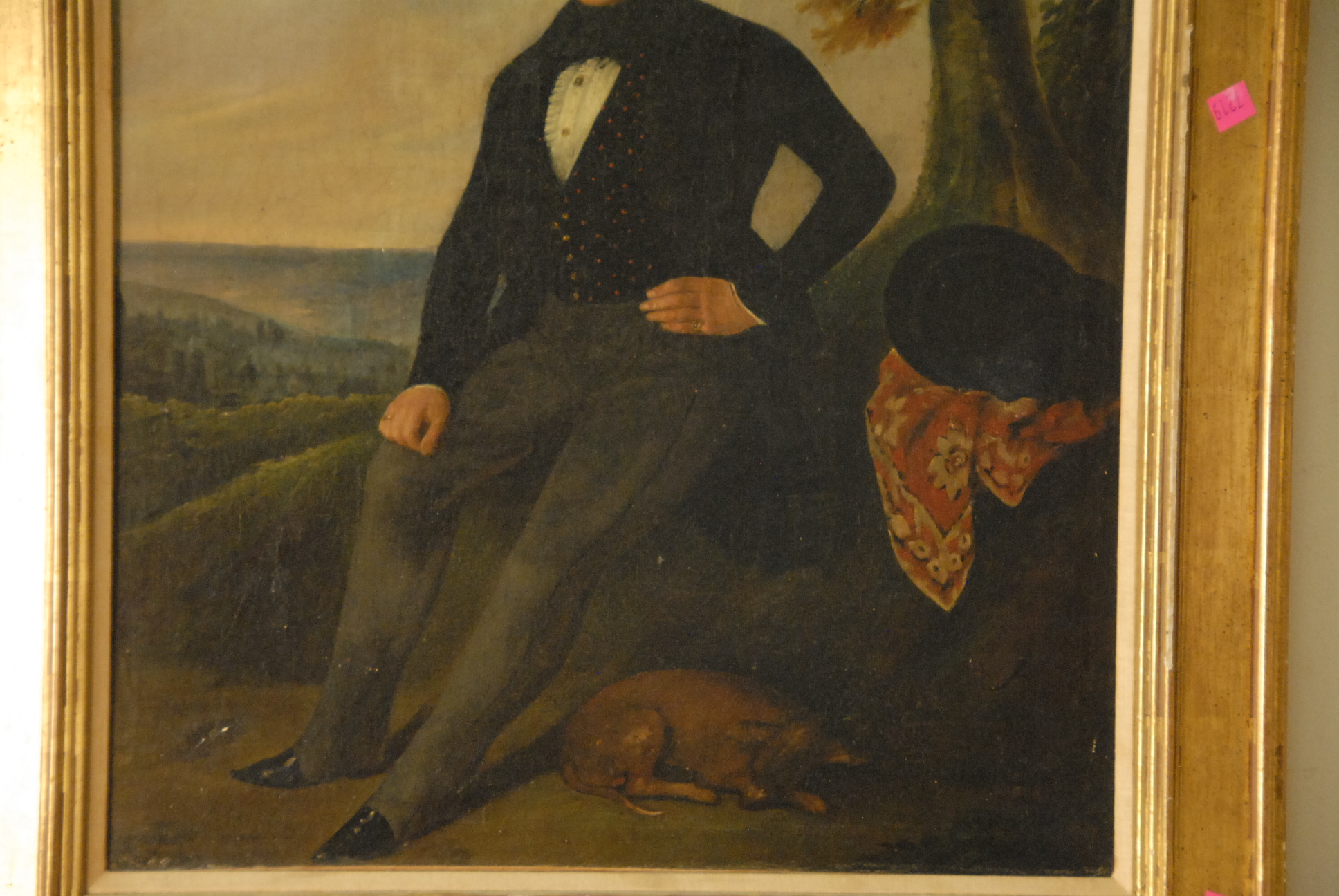 English School MAN WITH DOG LANDSCAPE oil on canvas unsigned 23 x 18