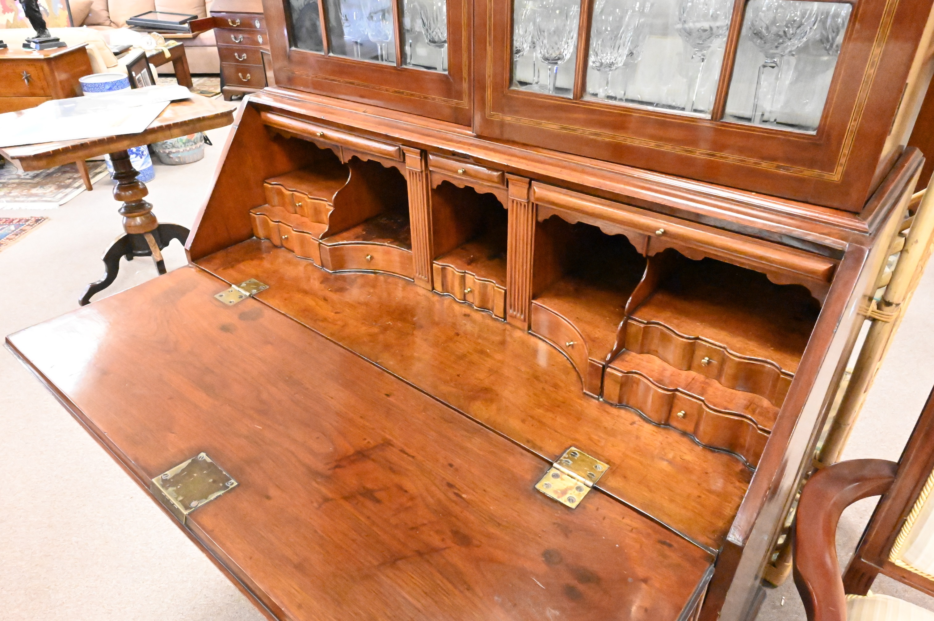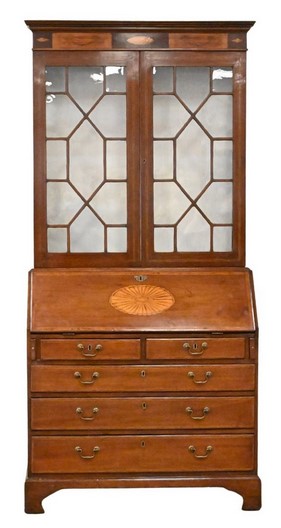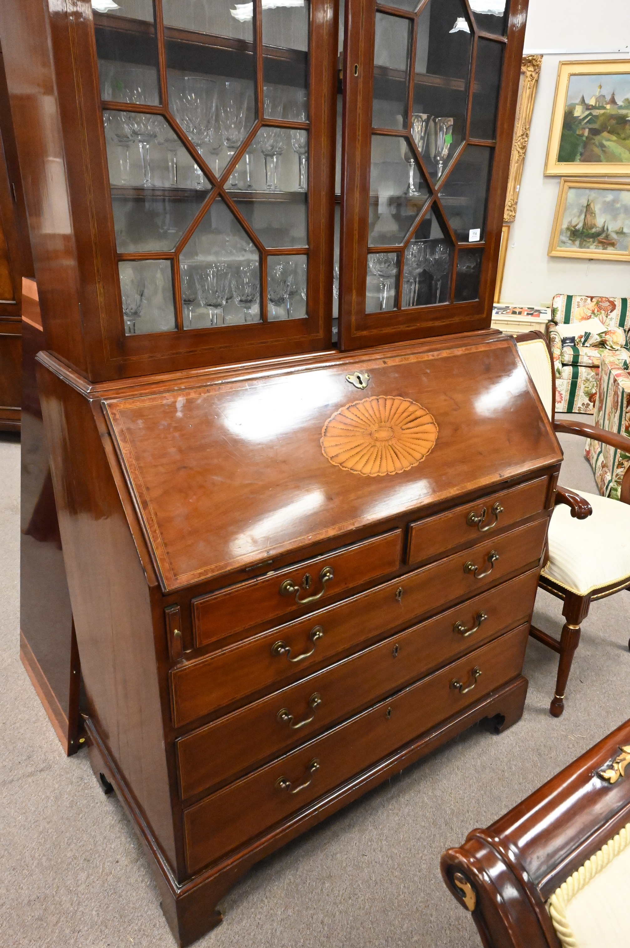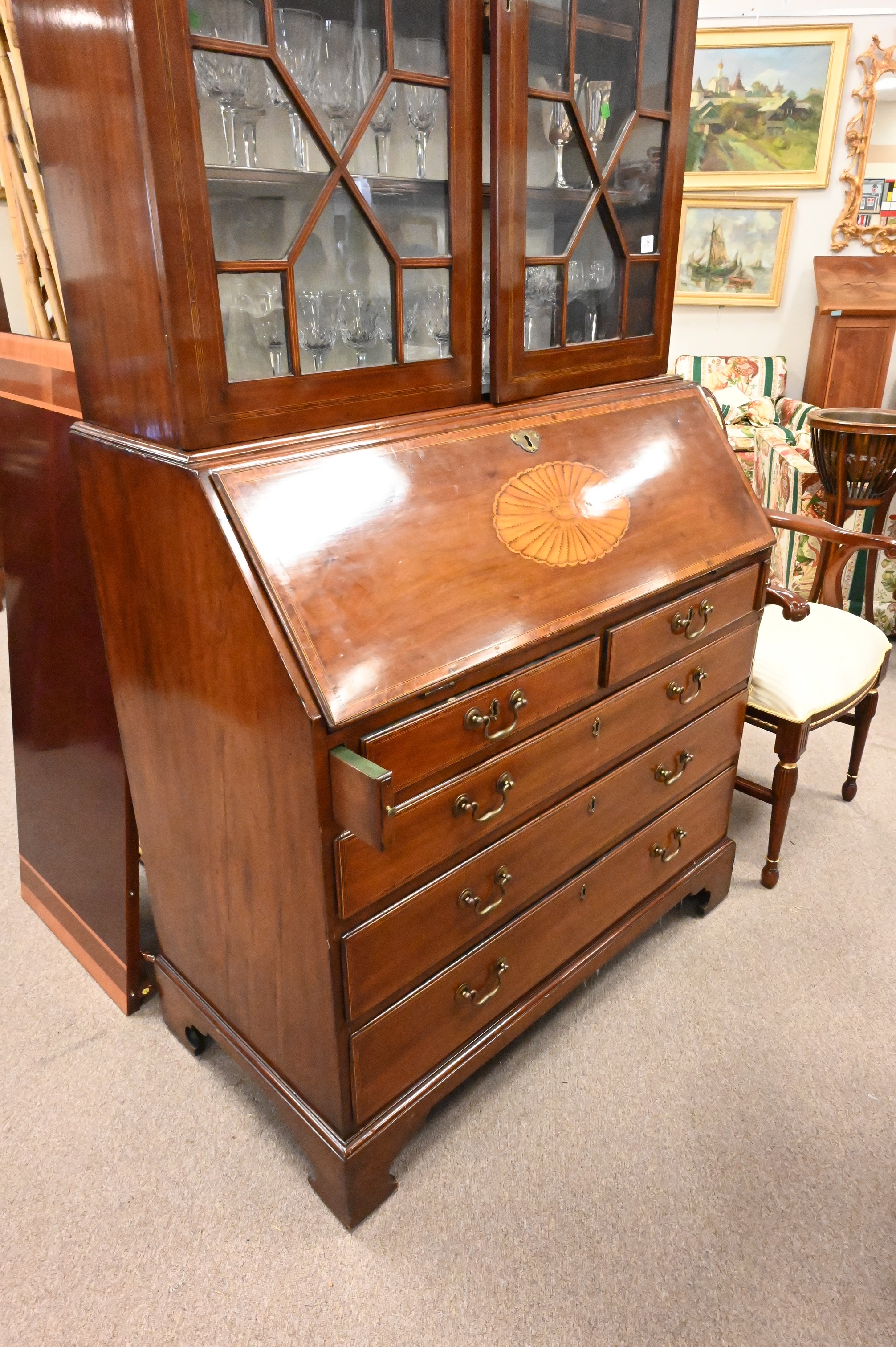 George III Mahogany Secretary Desk, in two parts, having shelves, 18th century, height 89 inches, width 42 inches
