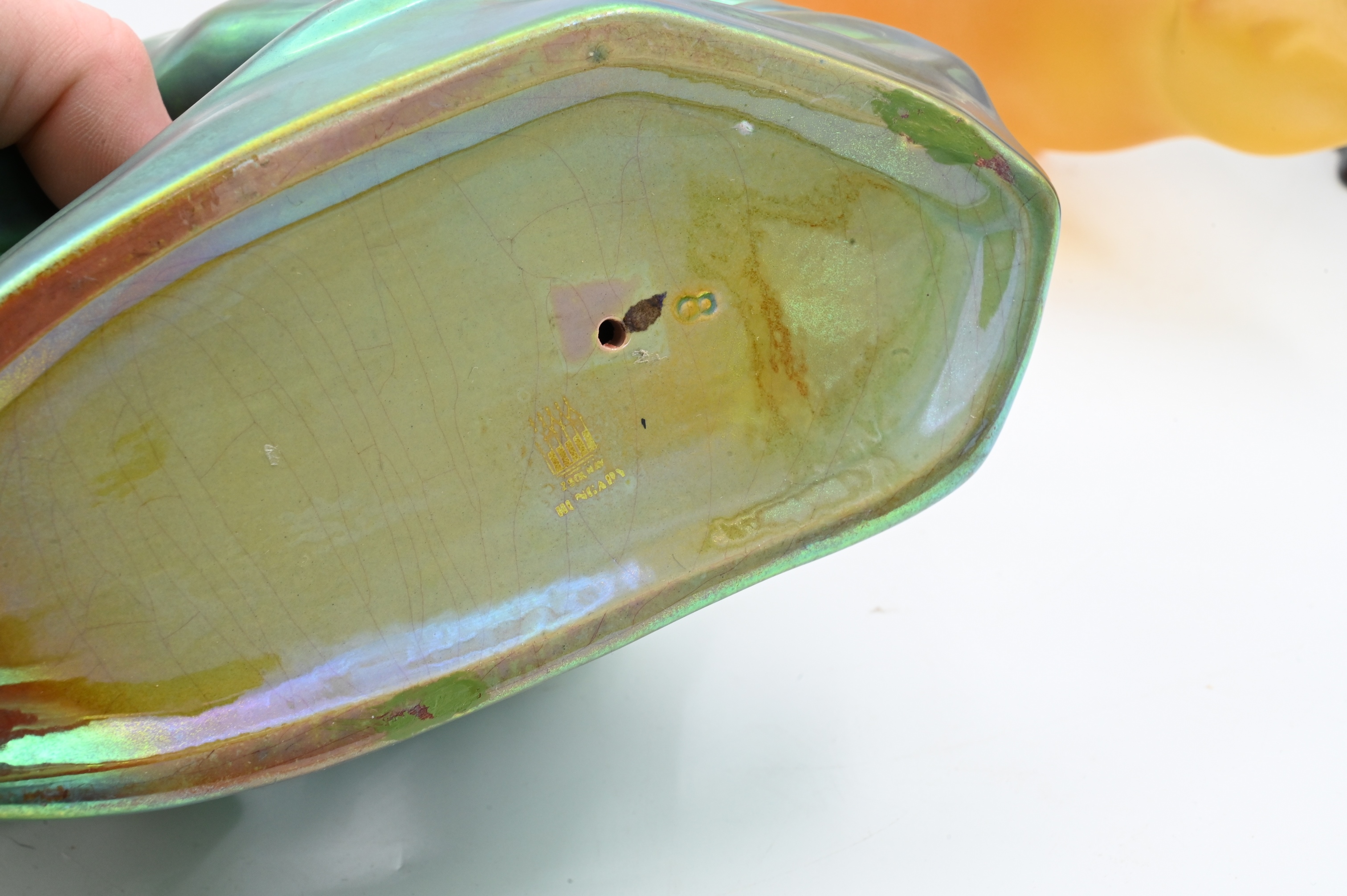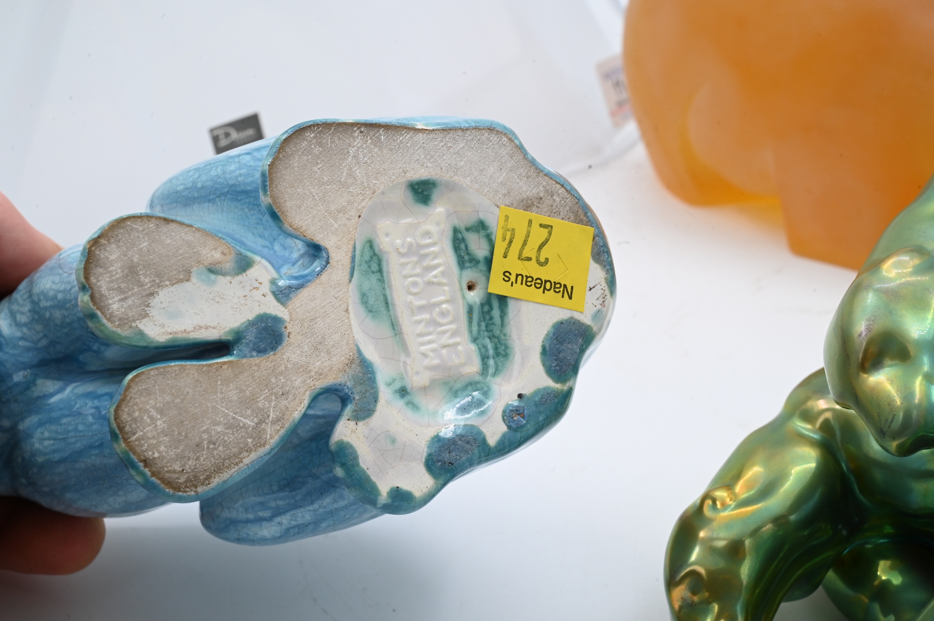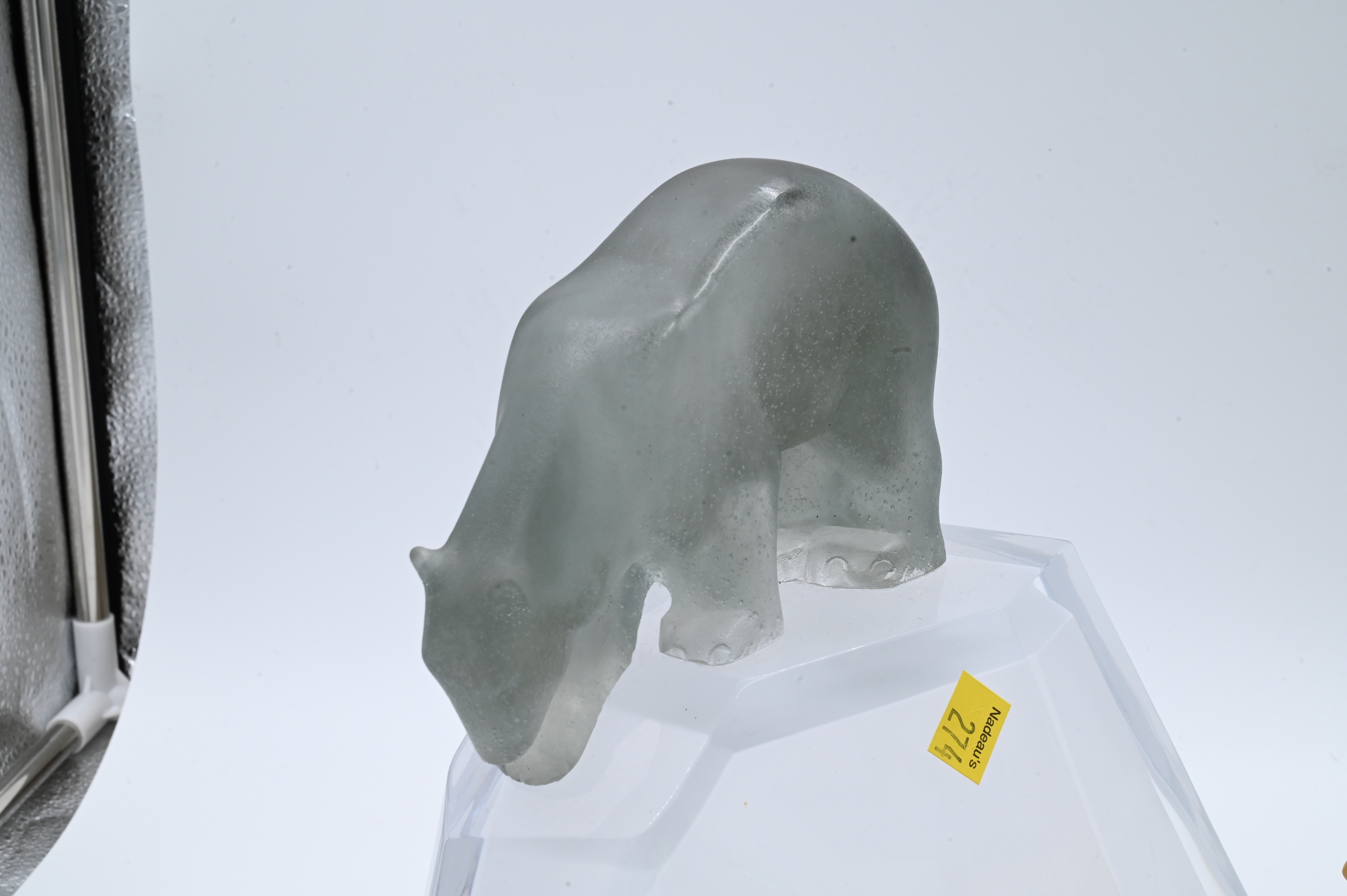Mihaly Nagy for Zsolnay Hungary green iridescent eosin glaze, Daum France polar bear on iceberg, Monton England porcelain polar bear, Sascha Brastoff lucite polar bear, glass bear on iceberg signed on base, iridescent blue polar bear
