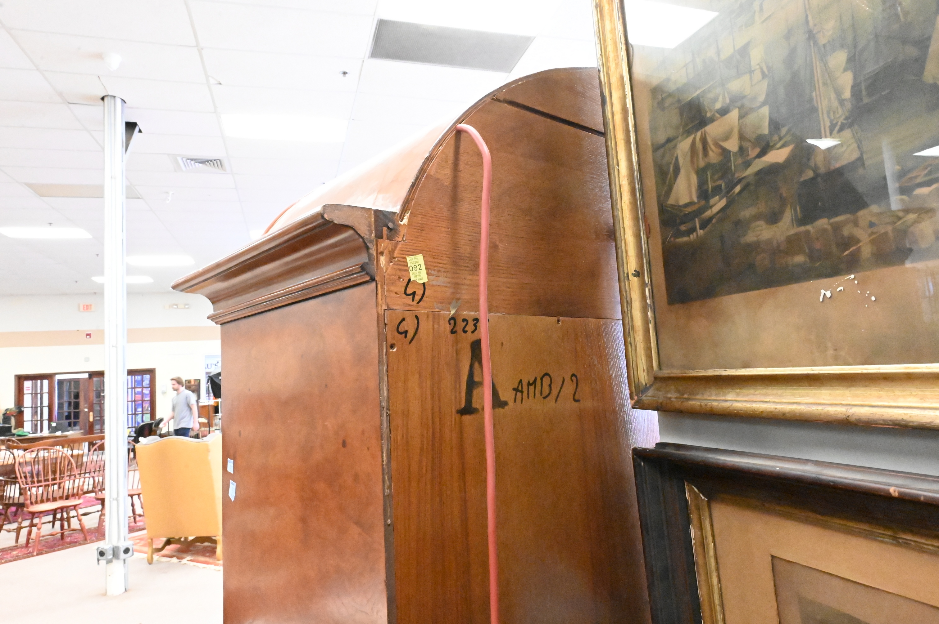This report is provided by Nadeau’s Auction Gallery as a courtesy and reflects our opinion only. Bidders should conduct their own due diligence. The absence of a report does not imply the lot is free of issues. Assessments are based on visual inspection; unless noted, items have not been examined under UV light, movements and electrical components have not been tested, and artworks are generally not removed from frames. We are not professional conservators, and this report is not a comprehensive condition evaluation. Images provided form part of the report and should be reviewed carefully. All sales are final. For in-person inspection, please call 860-246-2444 or email info@nadeausauction.com.