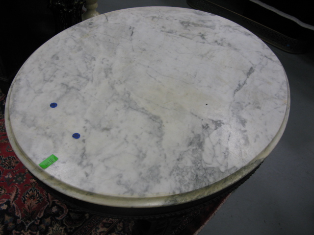 Lot 114: Oval Victorian marble top table.
