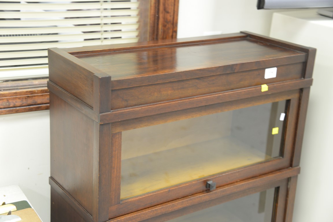 Pair of diminutive walnut stacking bookcases. ht. 47 in. wd. 26 in. dp. 11 in.