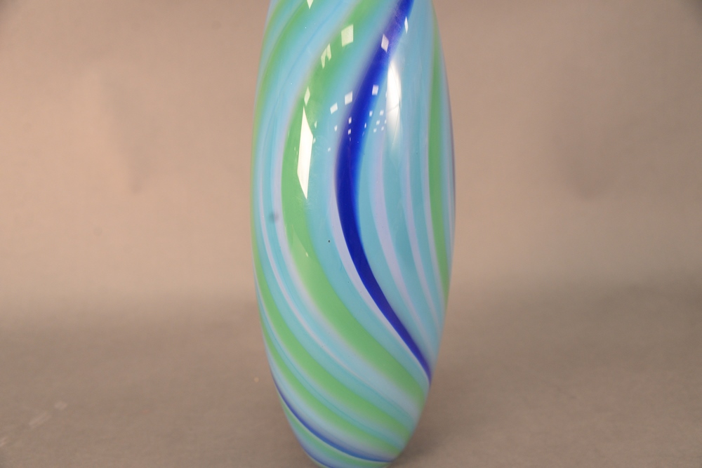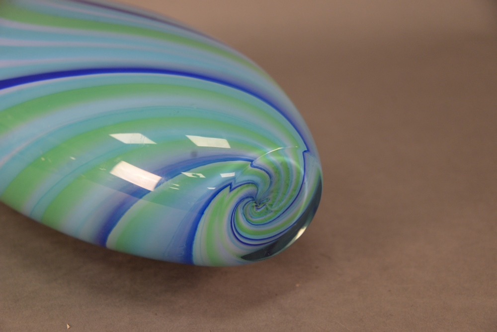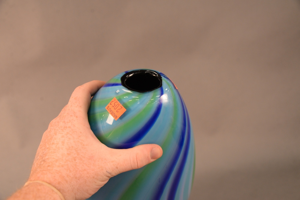 Lot 114: Seguso Viro Large Murano Glass Blue and Green Vase, “Bariloche”, signed, titled, and editioned “42/101” on the underside, height 17 …
