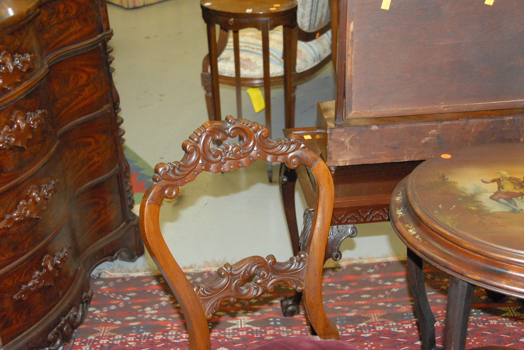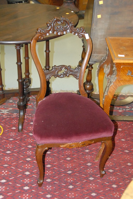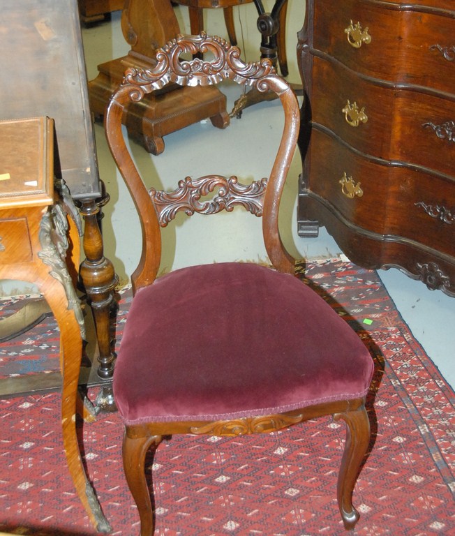 Lot 114: Set of four pierce carved rosewood Victorian side chairs with upholstered seats. Being sold to benefit a Connecticut museum.