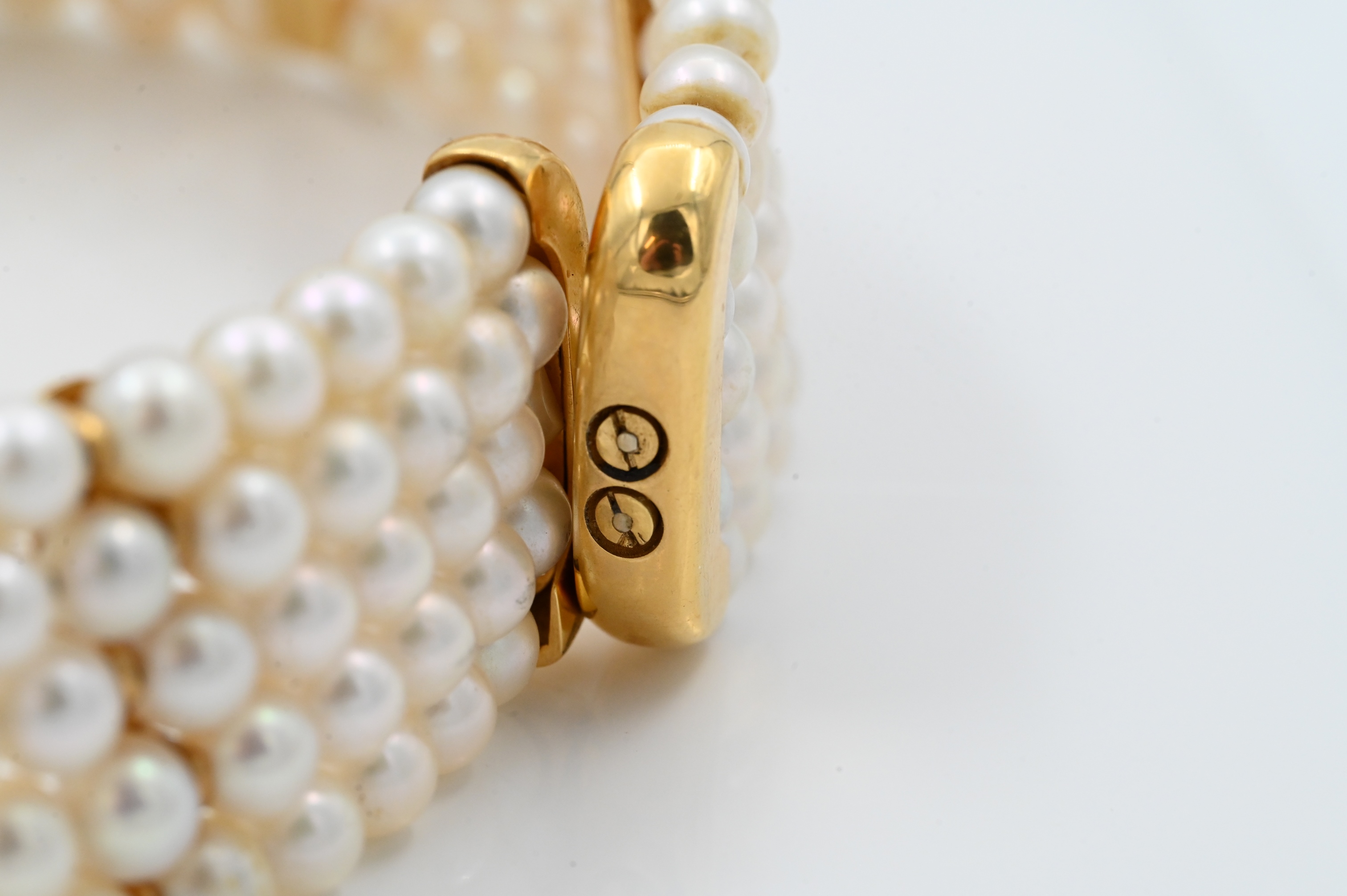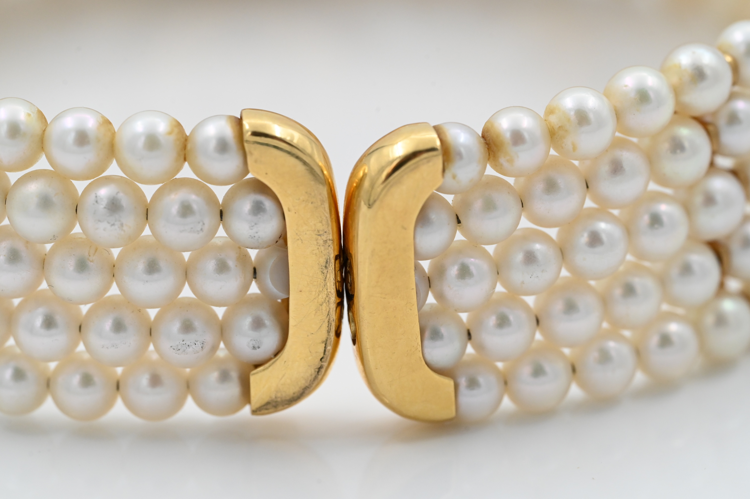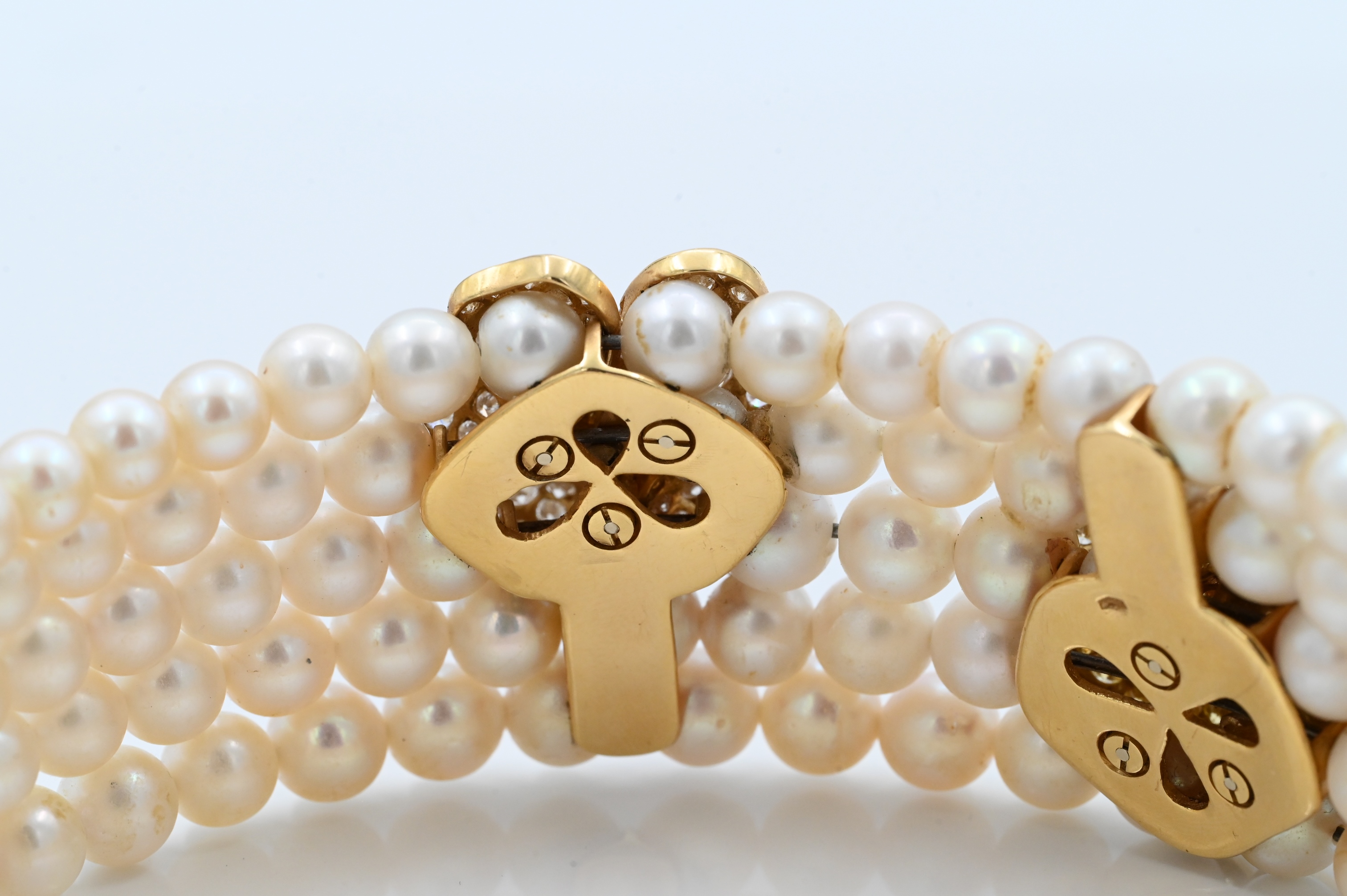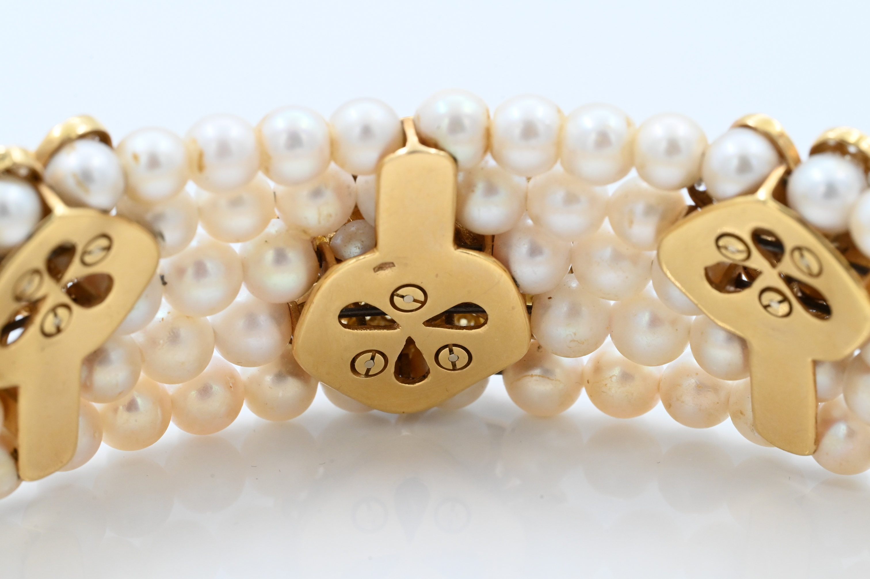 Lot 115: 18K Yellow Gold, Diamond, and Pearl Spring Choker Necklace