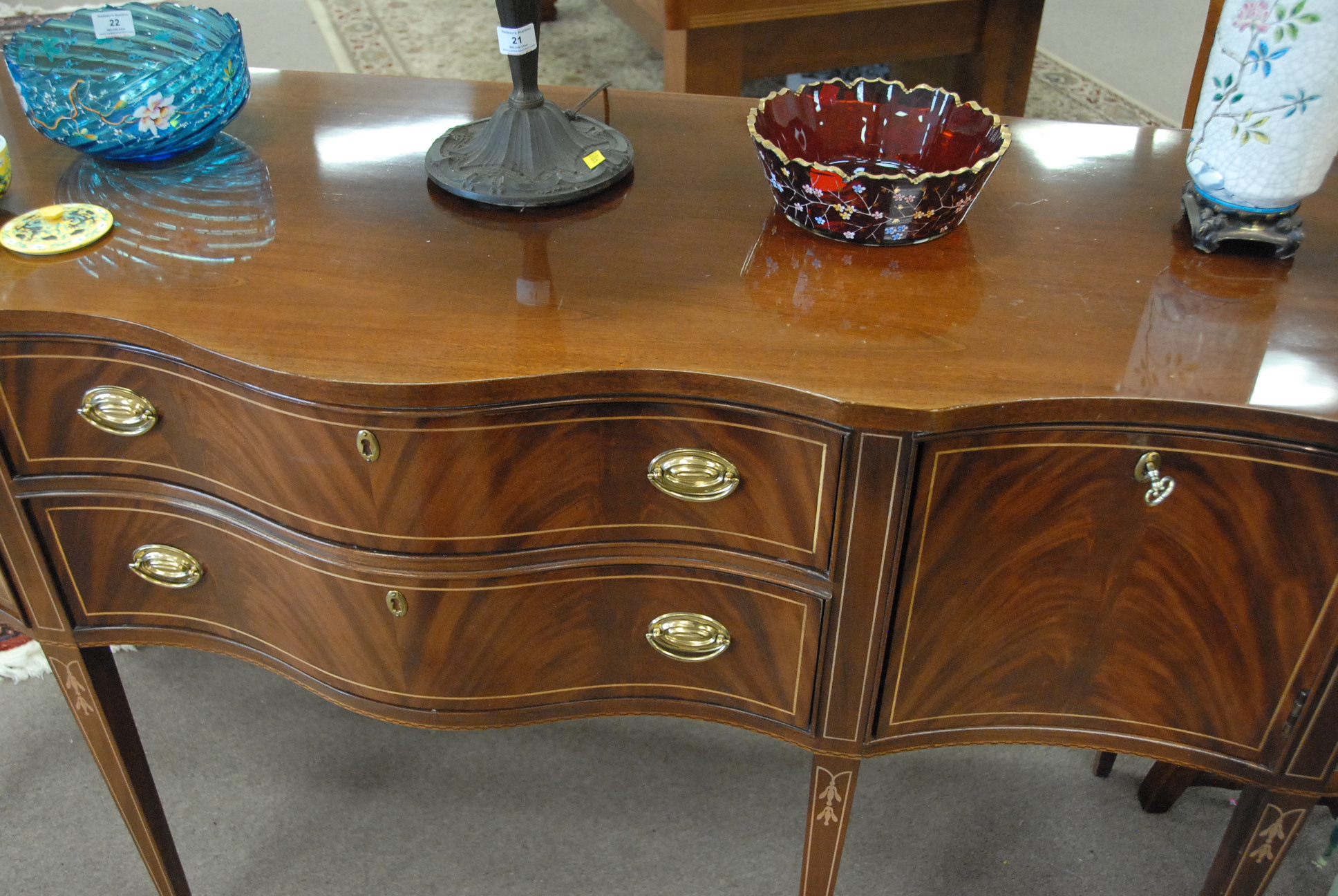 Lot 115: American Masterpiece Collection by Hickory inlaid Federal style sideboard, ht. 38in. lg. 66in. dp. 24in.
