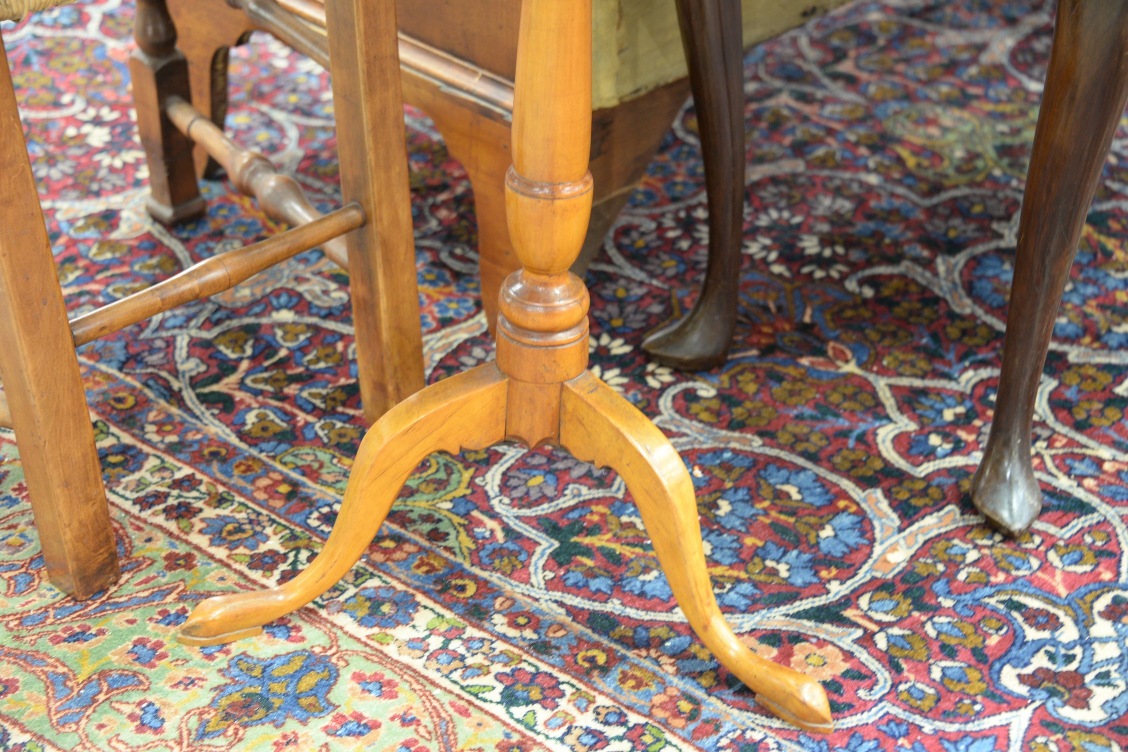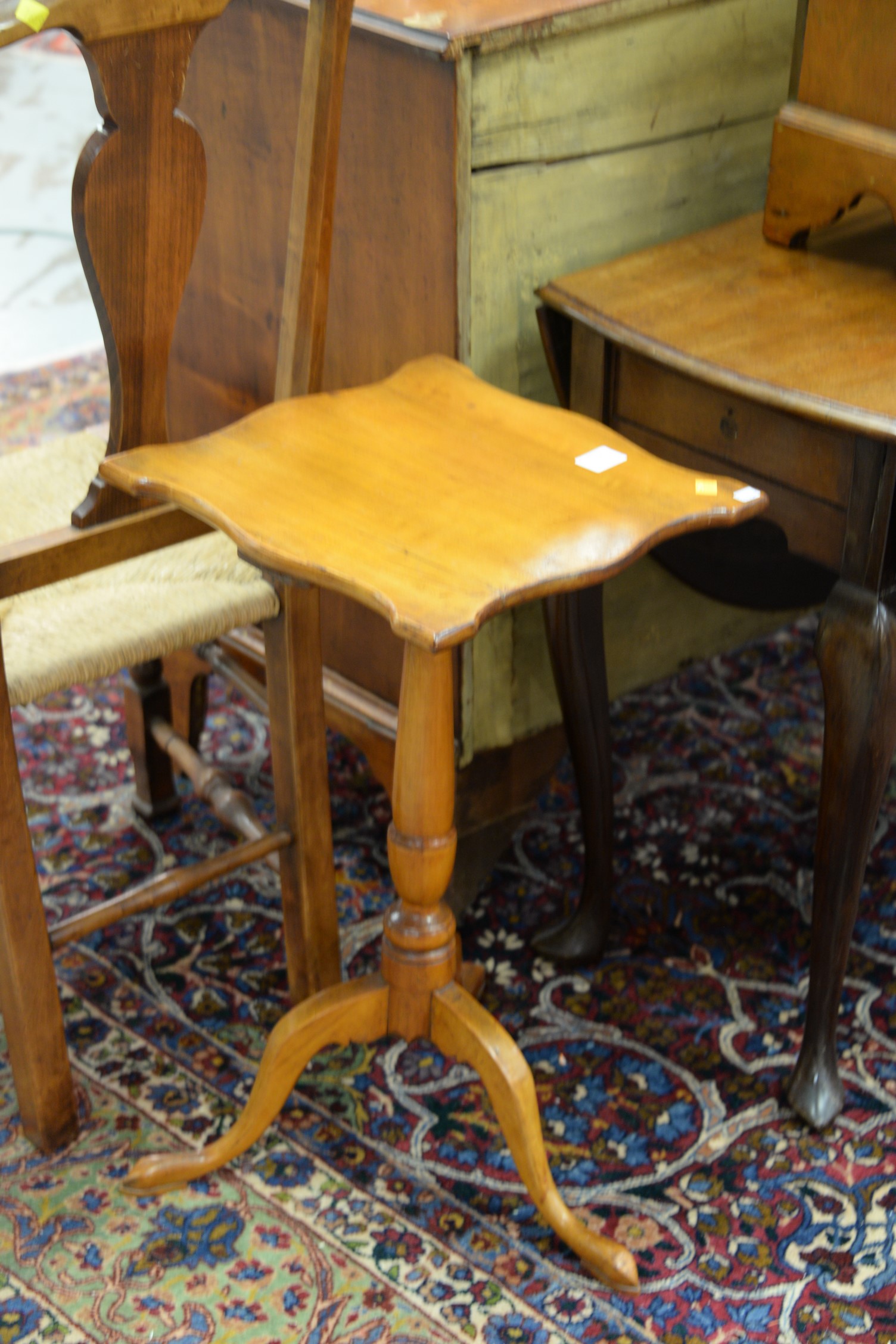 Lot 115: Cherry candlestand with shaped top on urn turned shaft set on tripod base. ht. 26 in. top: 14 1/2 x 15 Provenance: The…