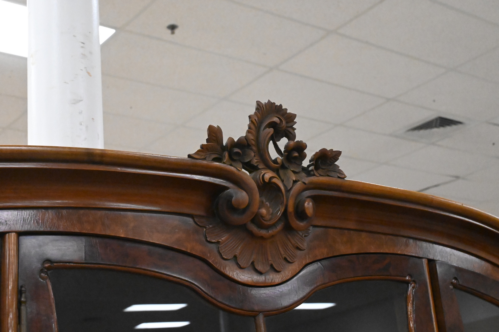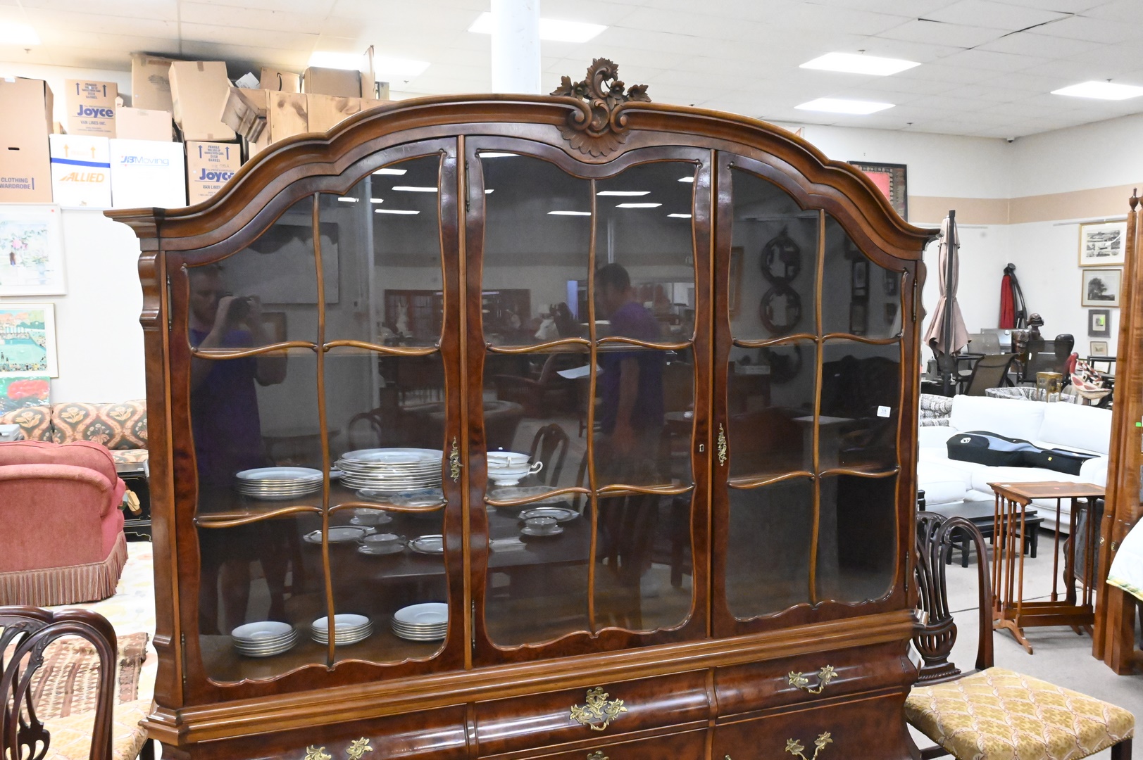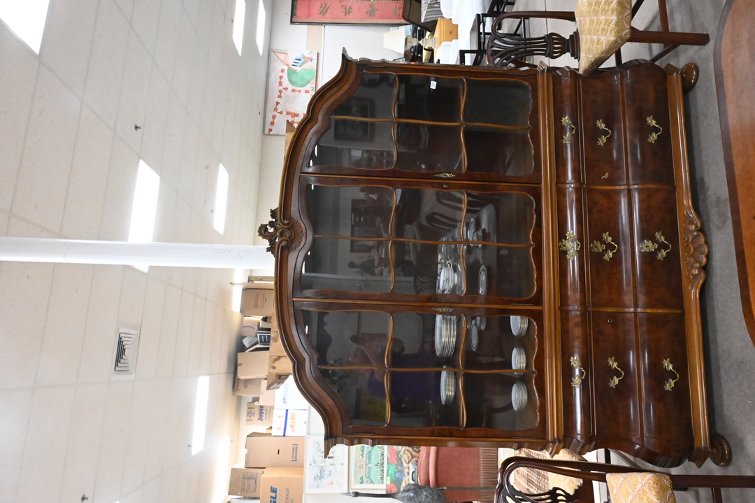 Continental Burl Walnut Breakfront, having doors and drawers, in two parts, height 84 inches, total width 80 inches.