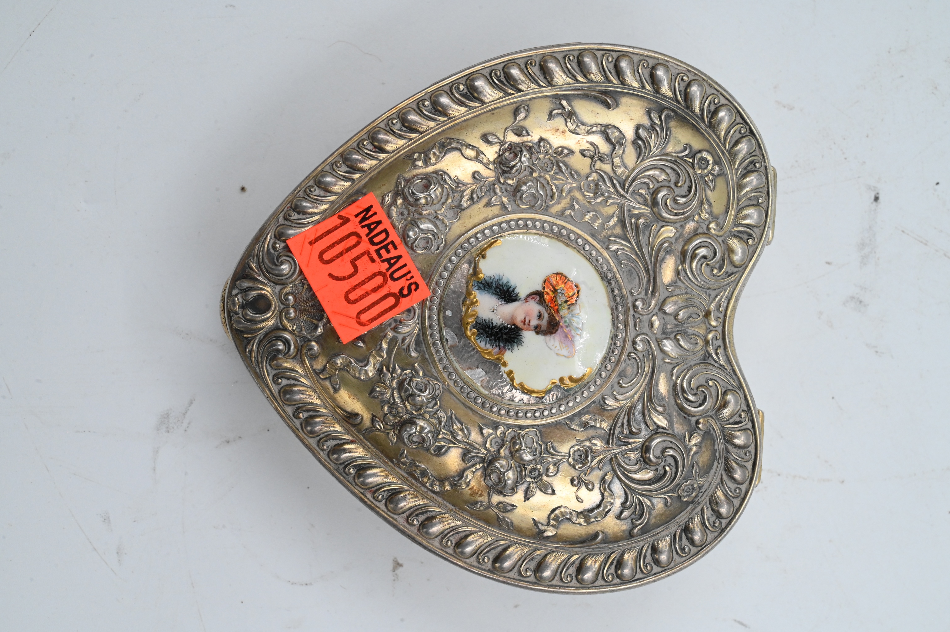 Lot 115: Gorham Heart Shaped Jewelry Box along with Reticulated Basket