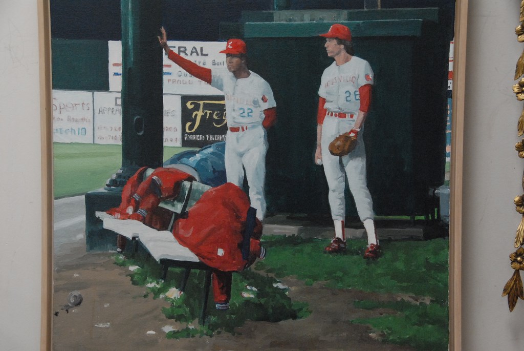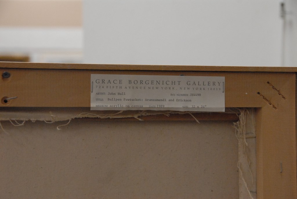 John Hull 1952 BULLPEN, PAWTUCKET 1989 acrylic on canvas signed, titled, and dated on reverse label on verso from Grace Borgenicht Gallery, 5th Ave., N.Y. 32 x 24
