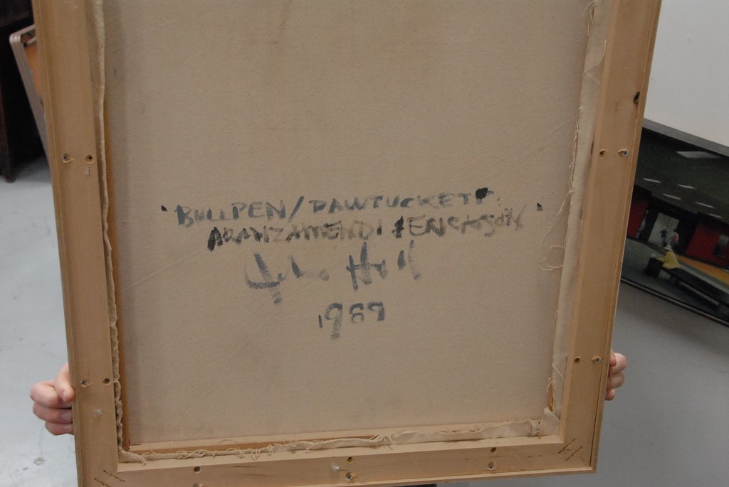 Lot 115: John Hull 1952 BULLPEN, PAWTUCKET 1989 acrylic on canvas signed, titled, and dated on reverse label on verso from Grac…