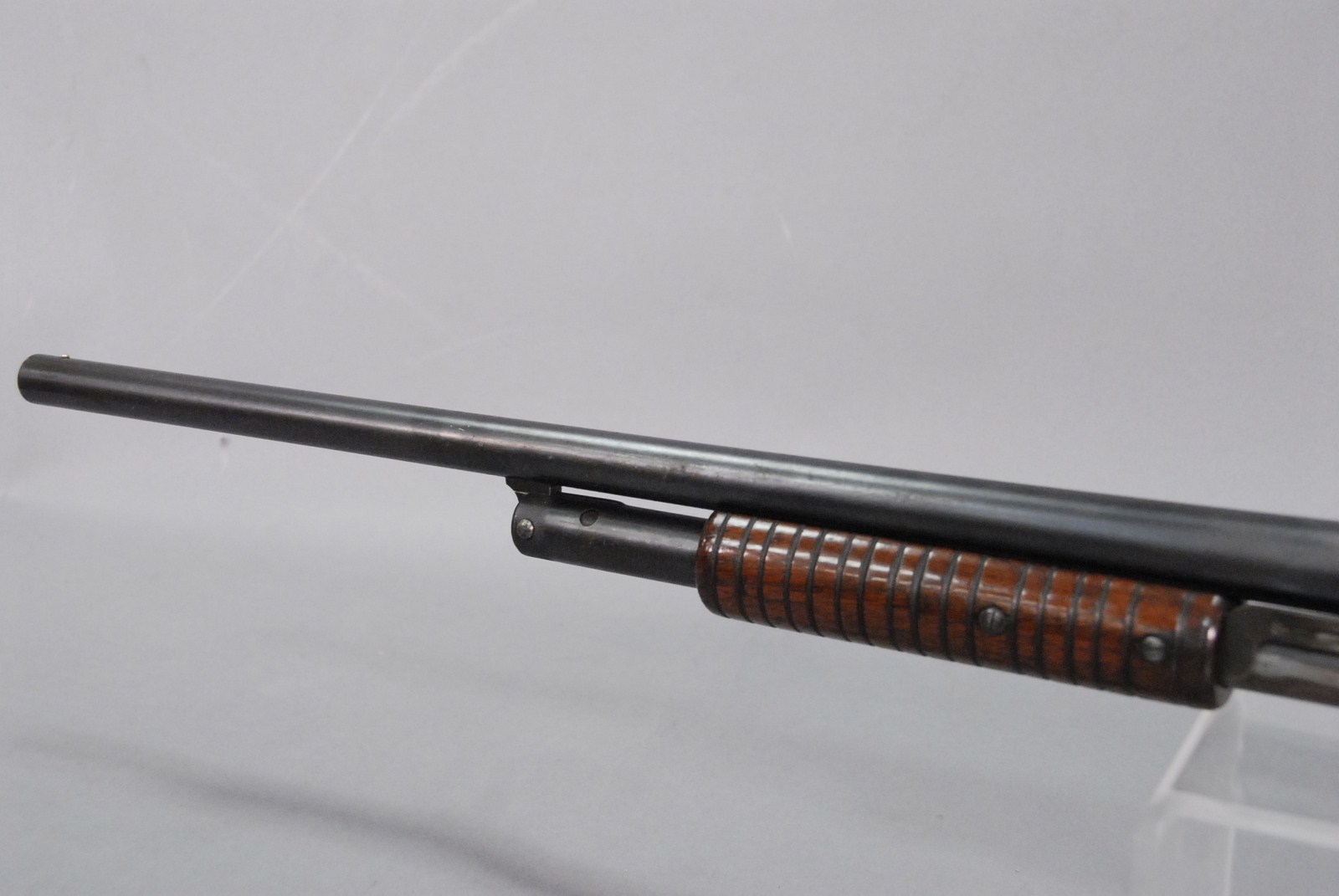 Marlin Firearms Co 1898 shotgun, 12 gauge slide action, 25 barrel, marked on barrel pat’d Nov 6 1894, May 12 1896, Jun 2 1896. 99 SN-11357