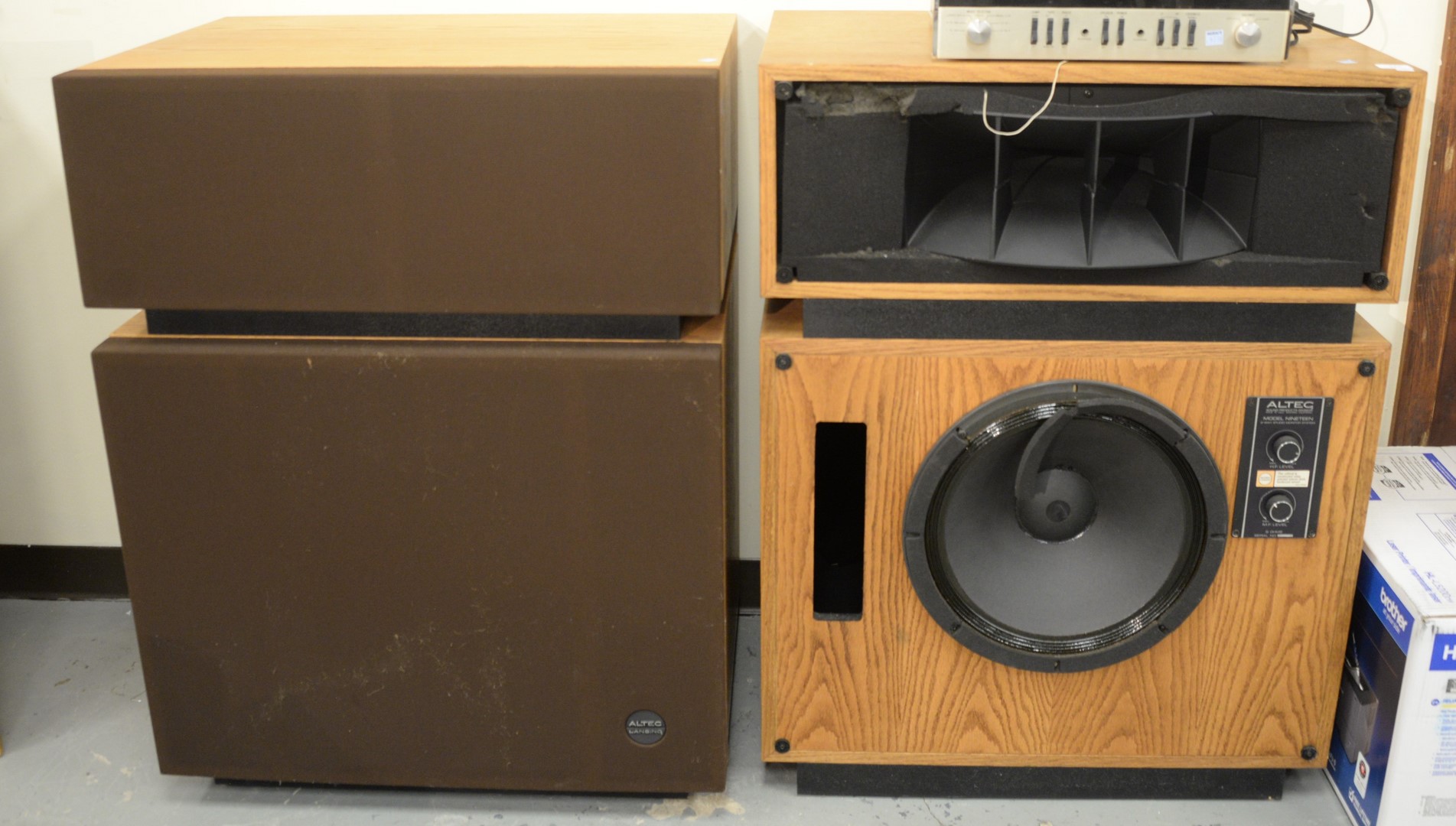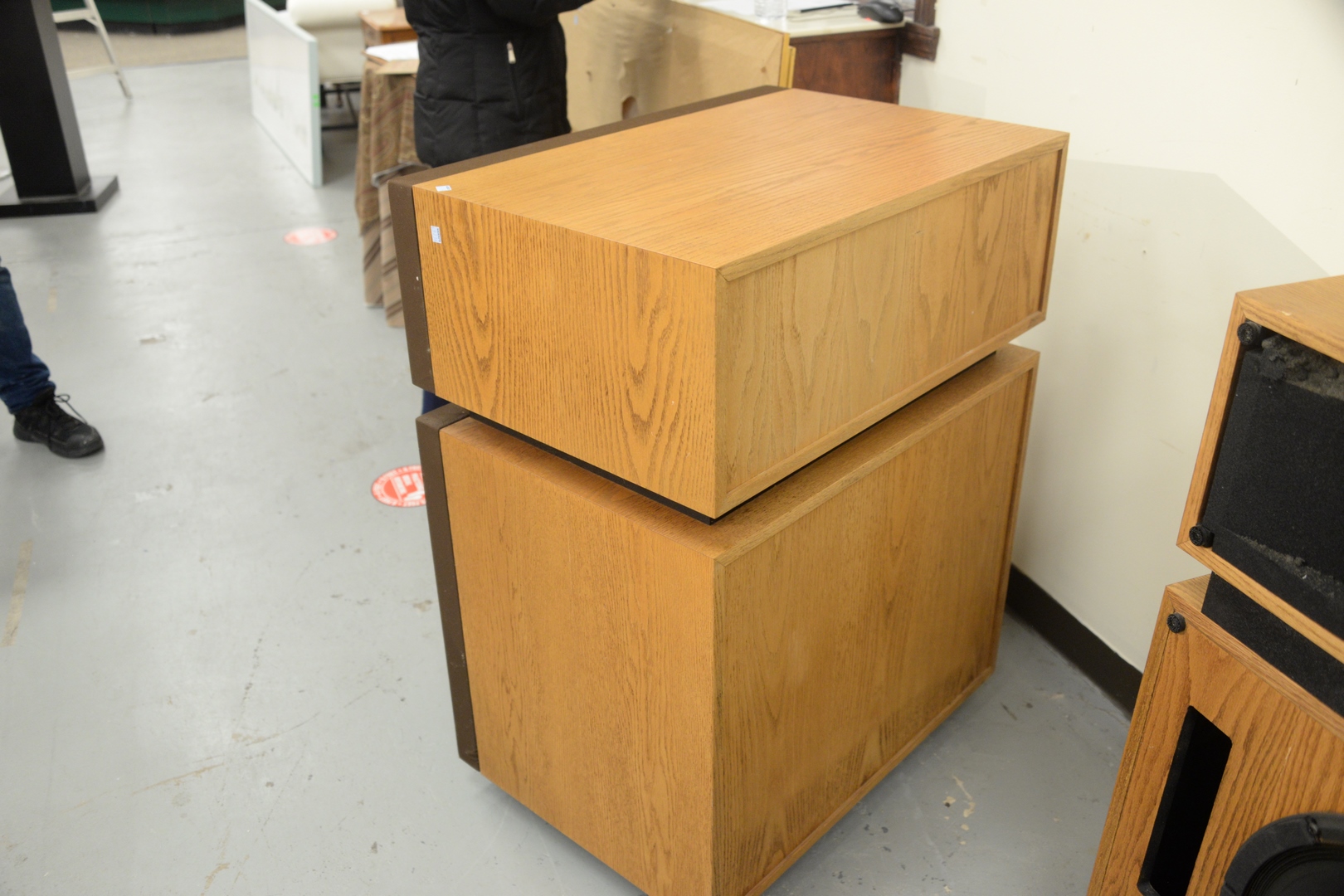 Lot 115: Pair of Altec Lansing Speakers, model nineteen two-way studio monitor system, height 39 inches, width 30 inches.