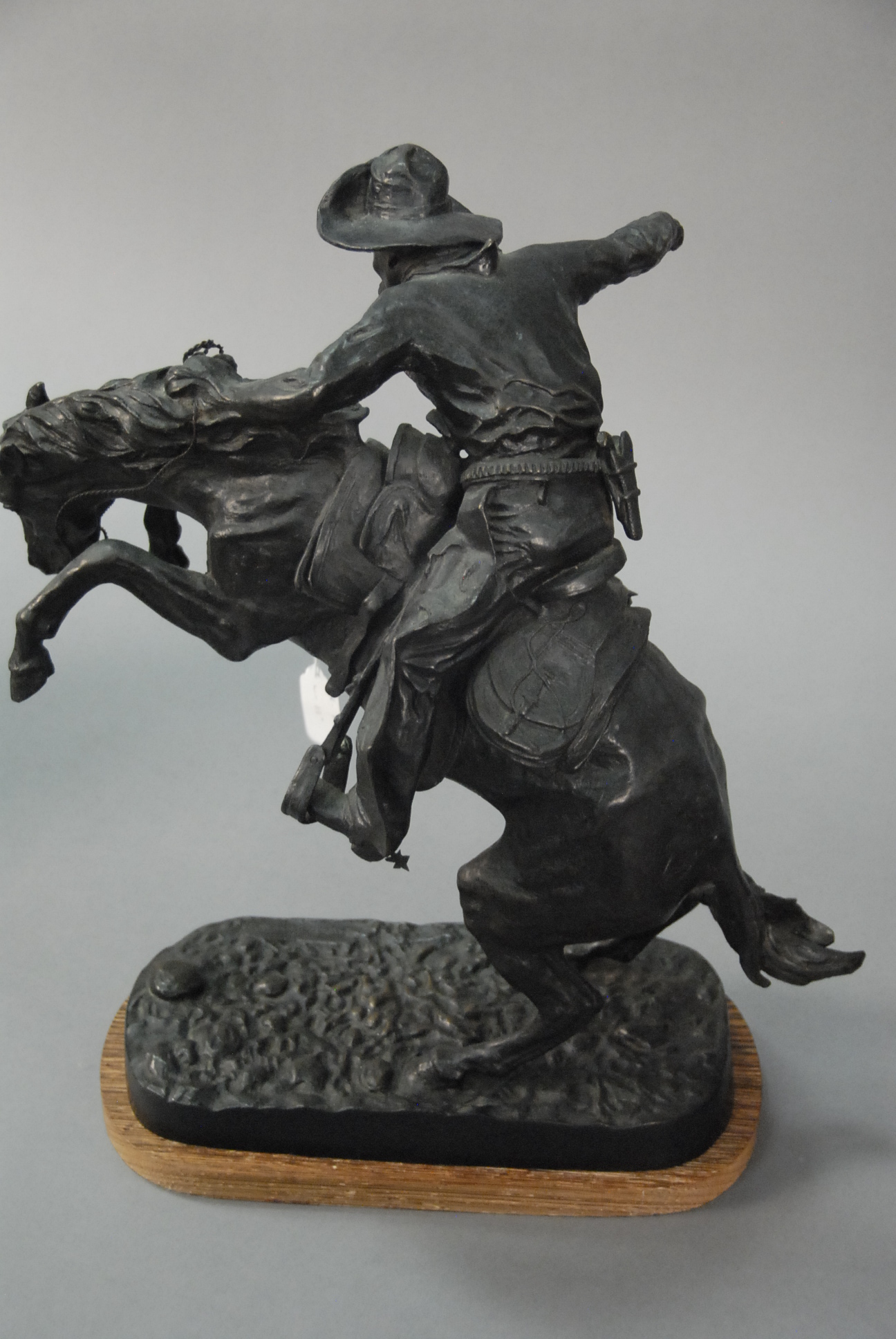 Remington style bronze Bronco Buster, ht. 17 1/2in.