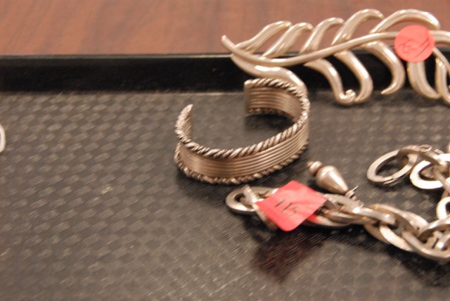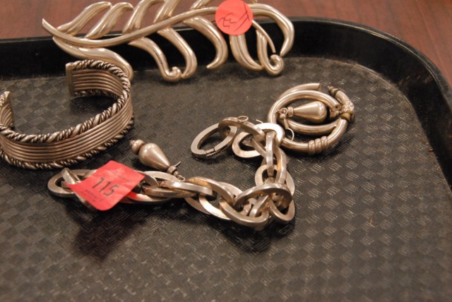 Sterling silver lot to include 2 pairs of earrings, heavy chain, bracelet and large pin.