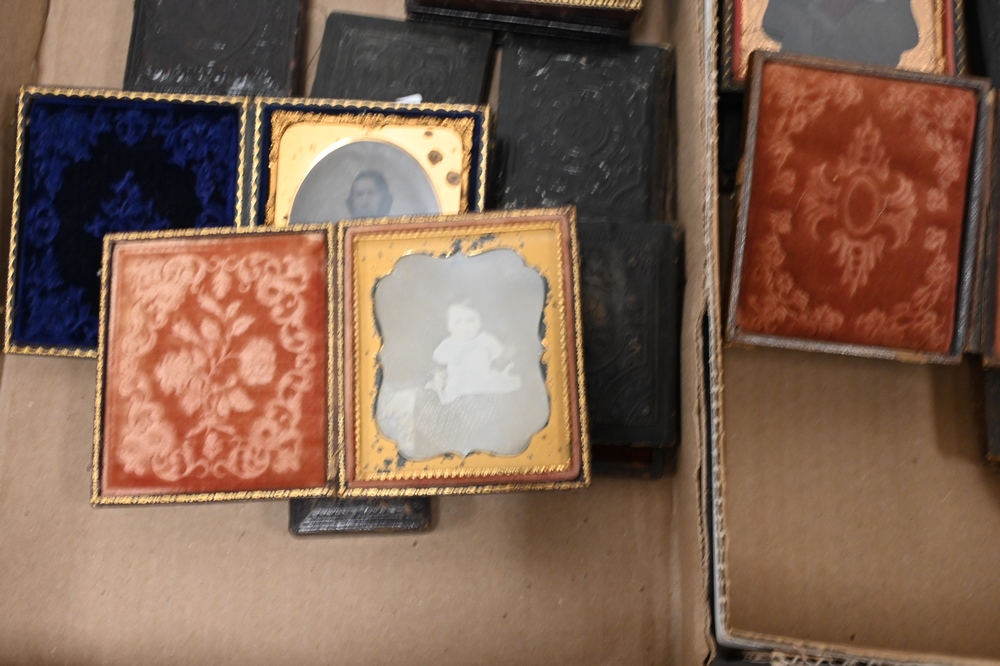 Three Tray Lots of Daguerreotype, Ambrotypes, and Tintypes, in leather cases.