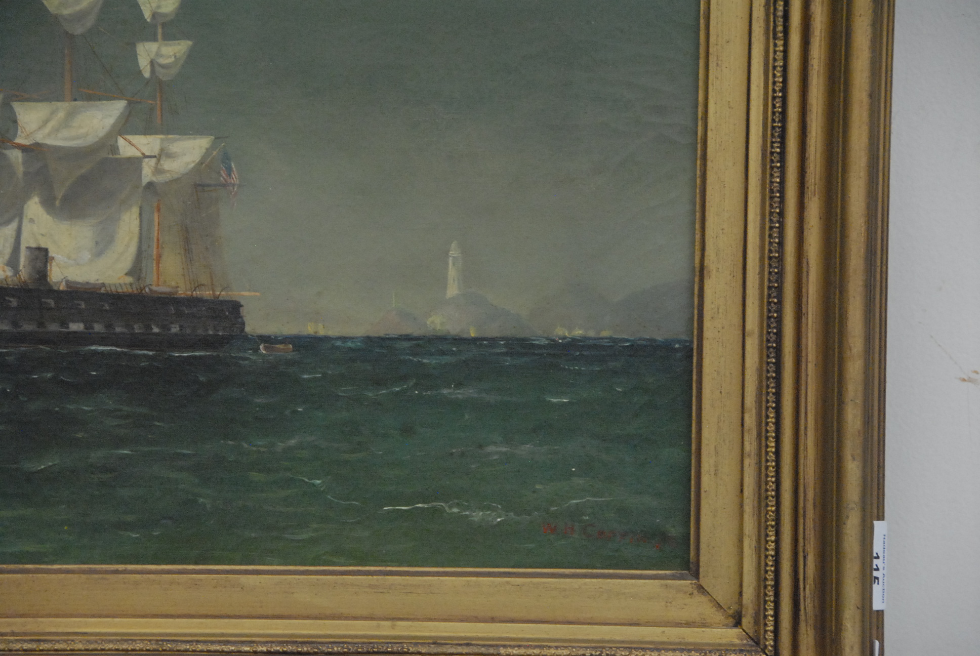 Lot 115: William Henry Coffin 1812-1898 ROWING TO THE SHIP FLYING AMERICAN FLAGS oil on canvas signed lower right W. H. Coffin 72 16 x 26