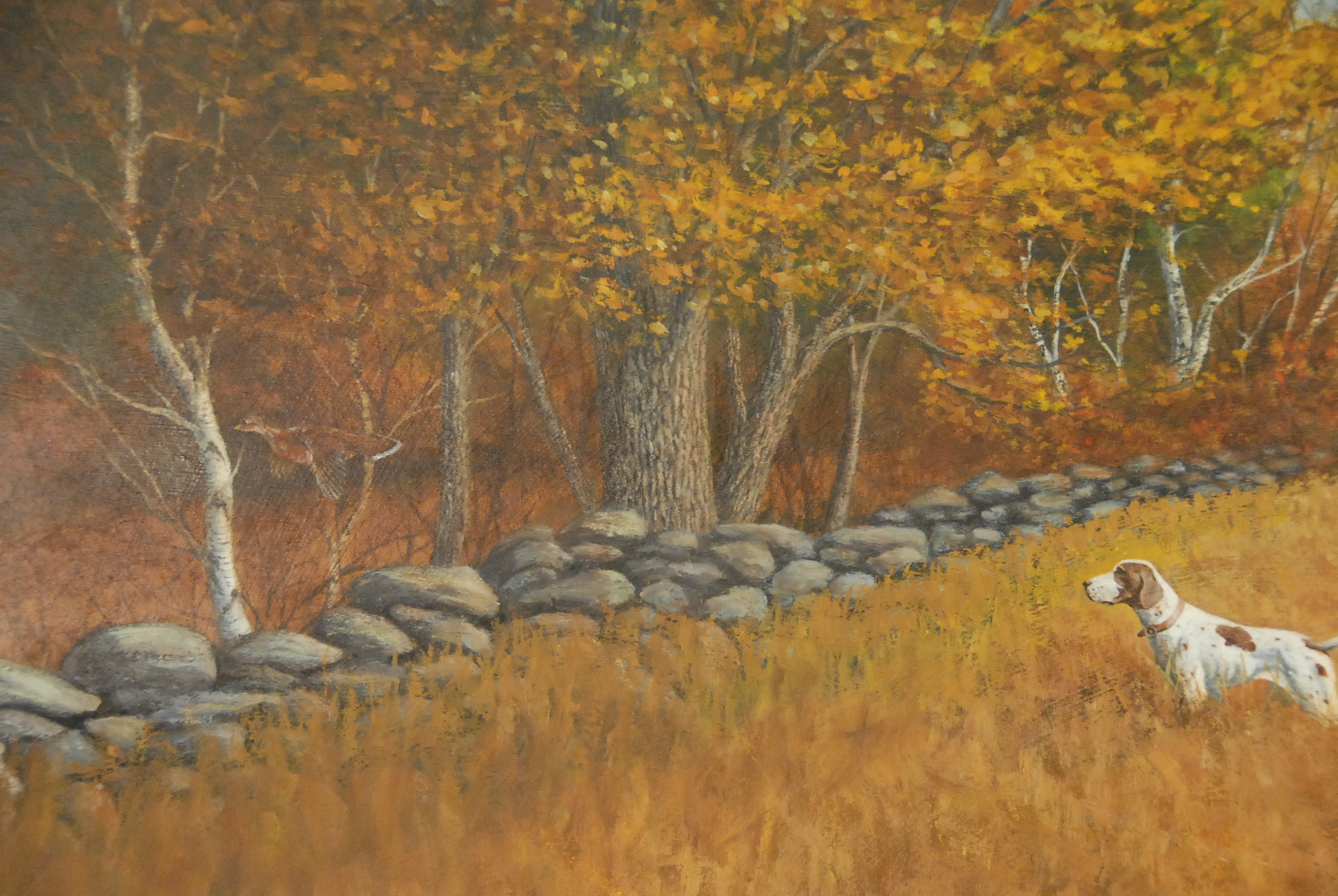 Lot 115: William P. Tyner 1935-1987 HUNTING GROUSE oil on masonite signed lower right W. P. Tyner 17 x 30