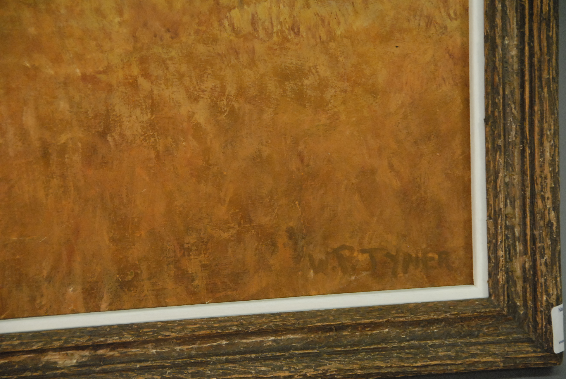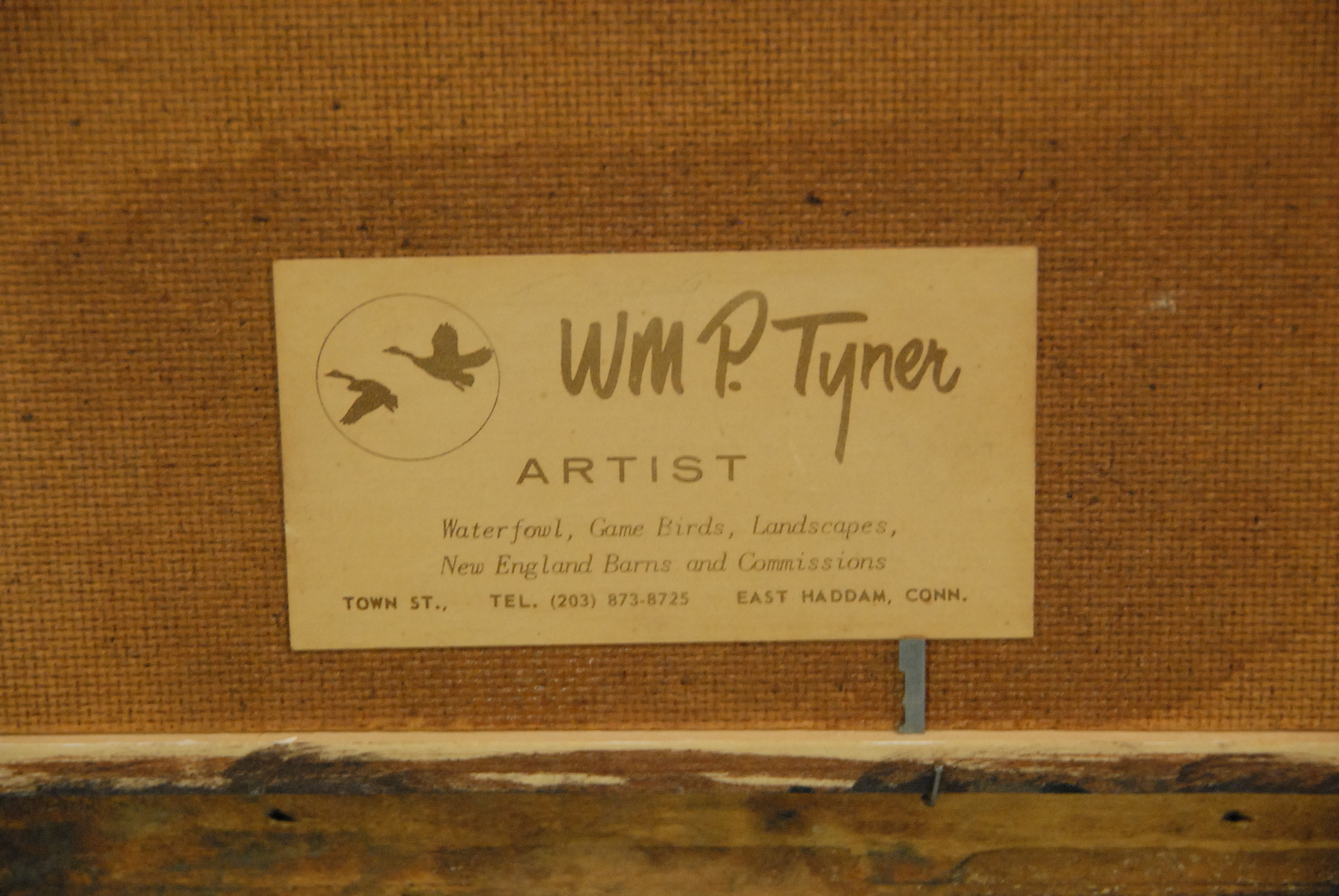 William P. Tyner 1935-1987 HUNTING GROUSE oil on masonite signed lower right W. P. Tyner 17 x 30