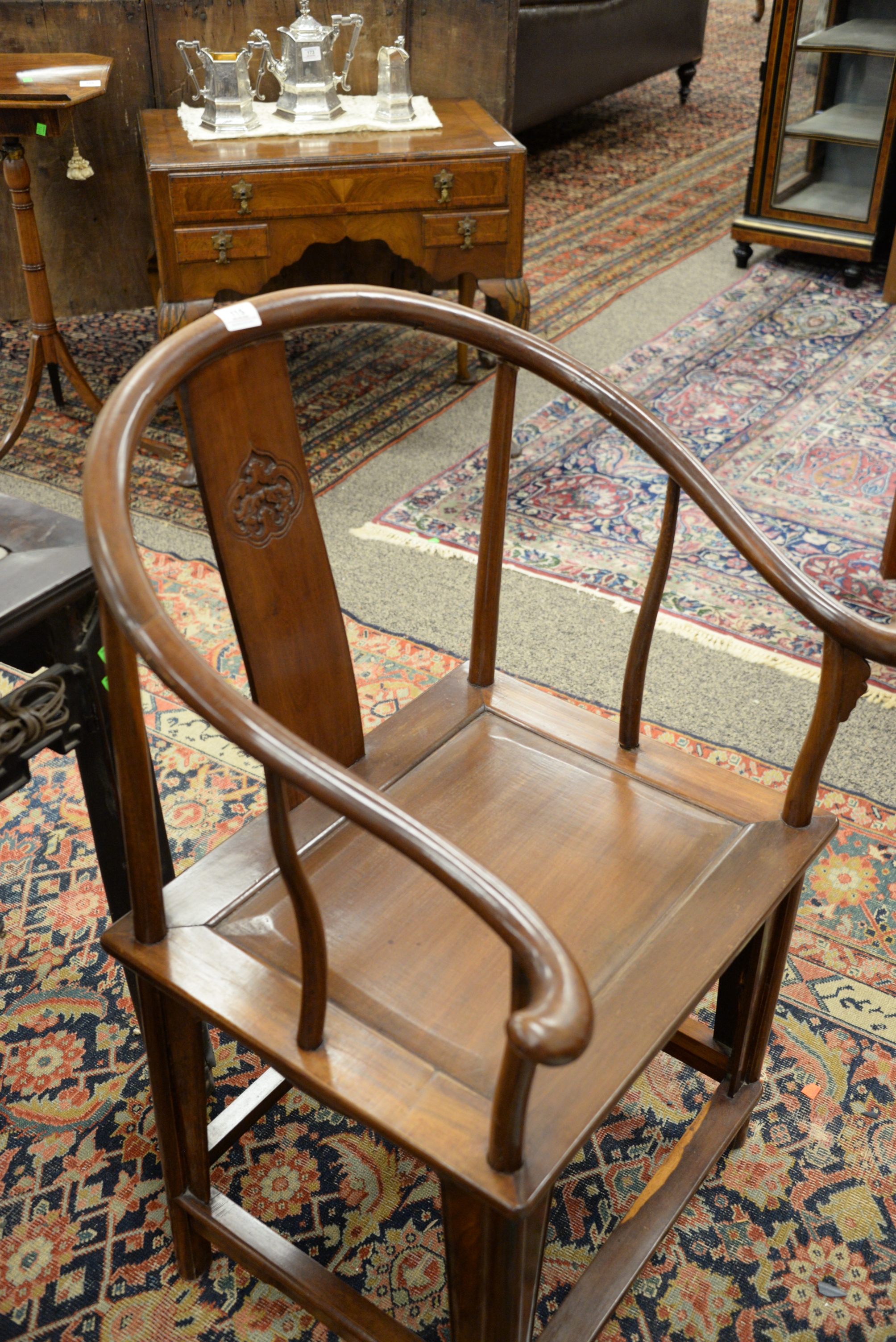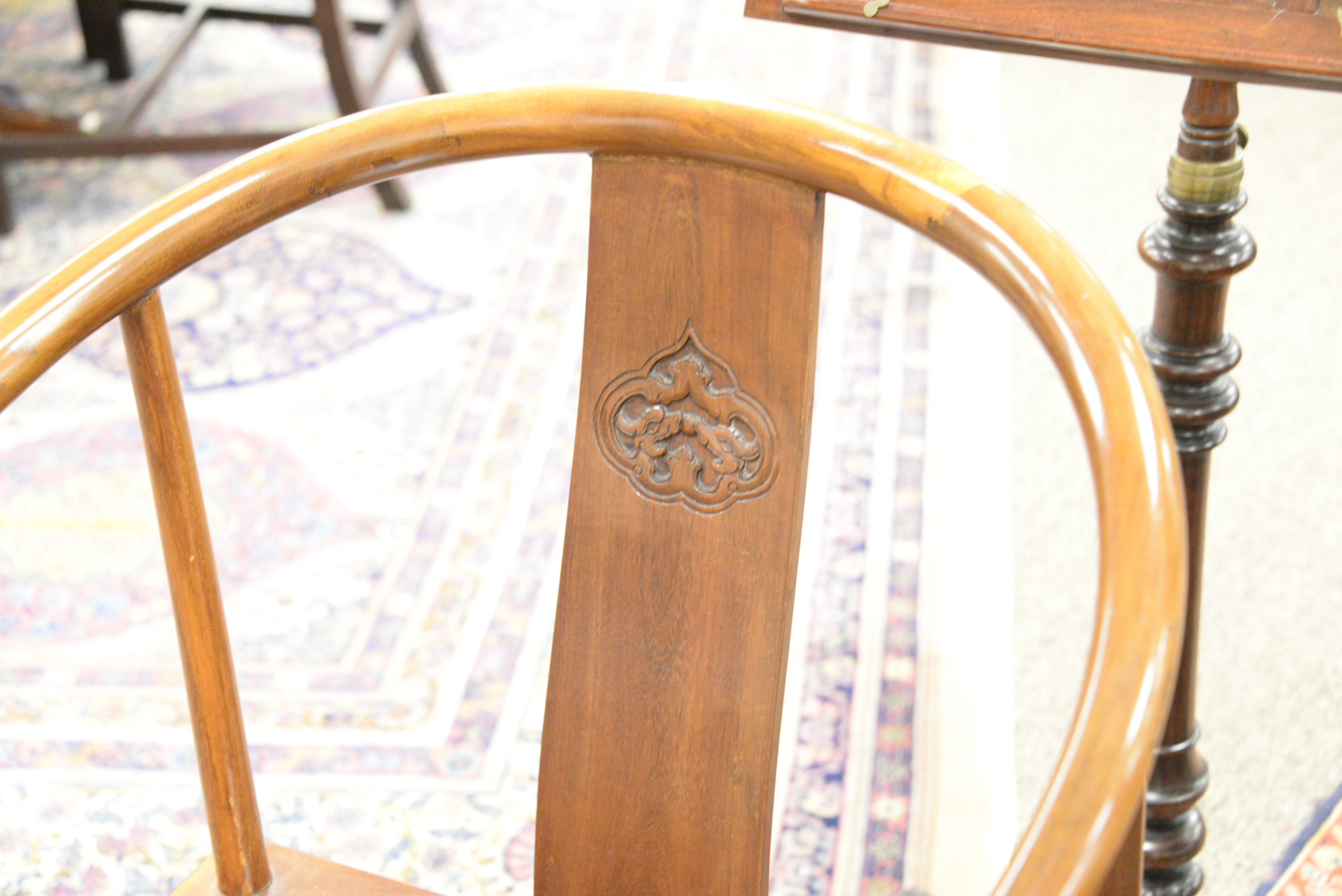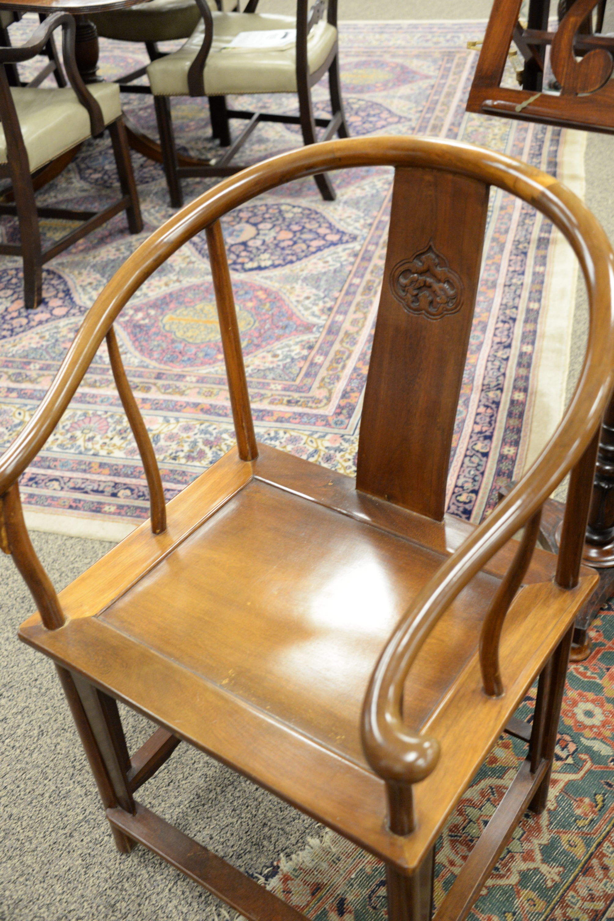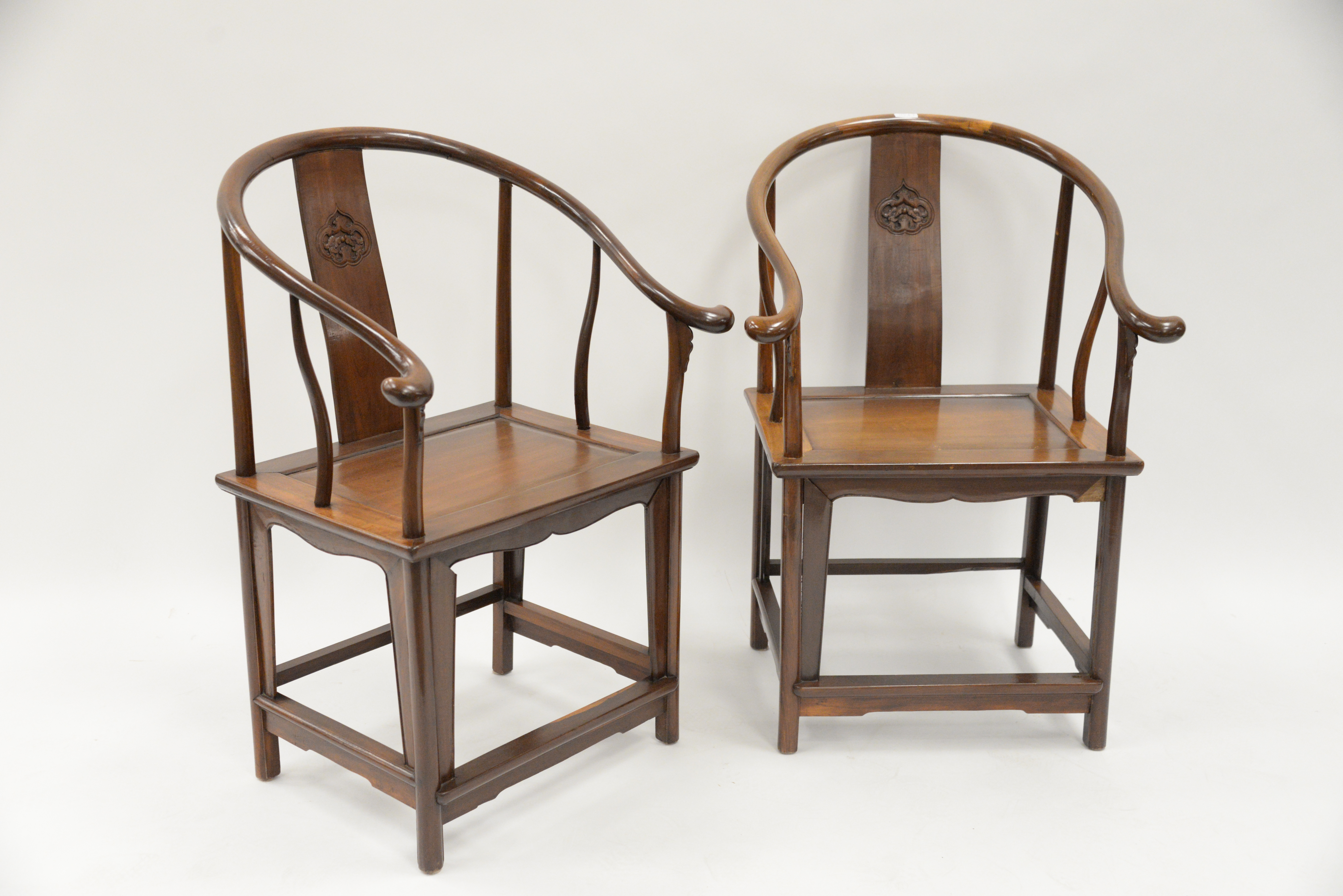 A Pair of Chinese Yoke Back Chairs, height 38 inches, width 25 1/2 inches.