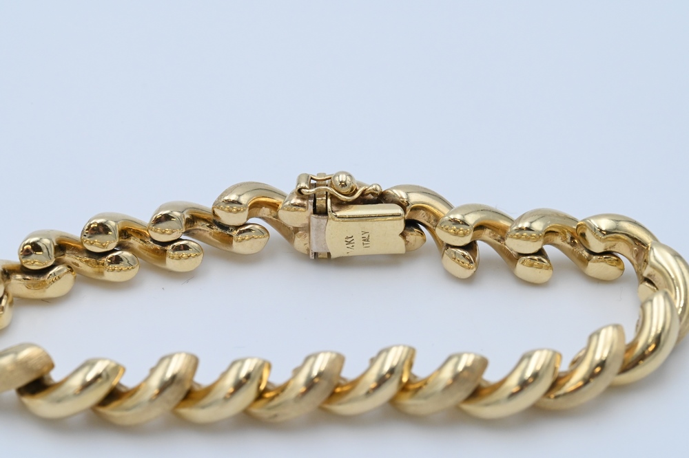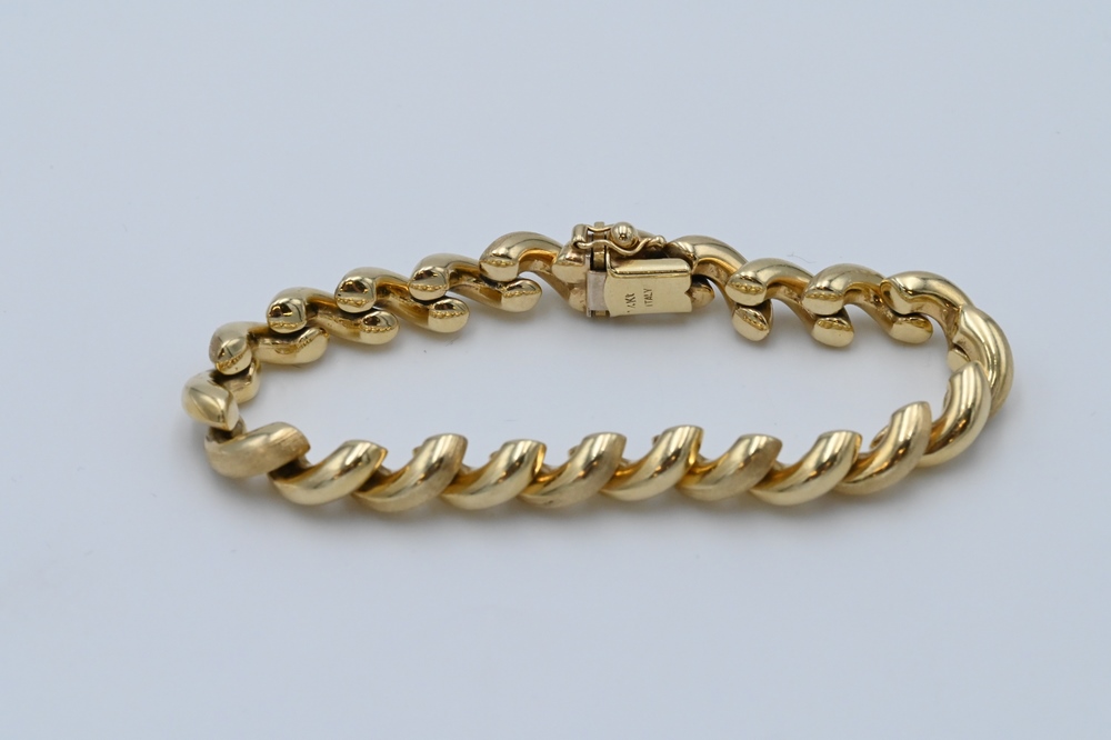 Lot 116: 14 Karat Yellow Gold Bracelet, every other link having brushed design, length 7 1/8 inches, 22 grams.