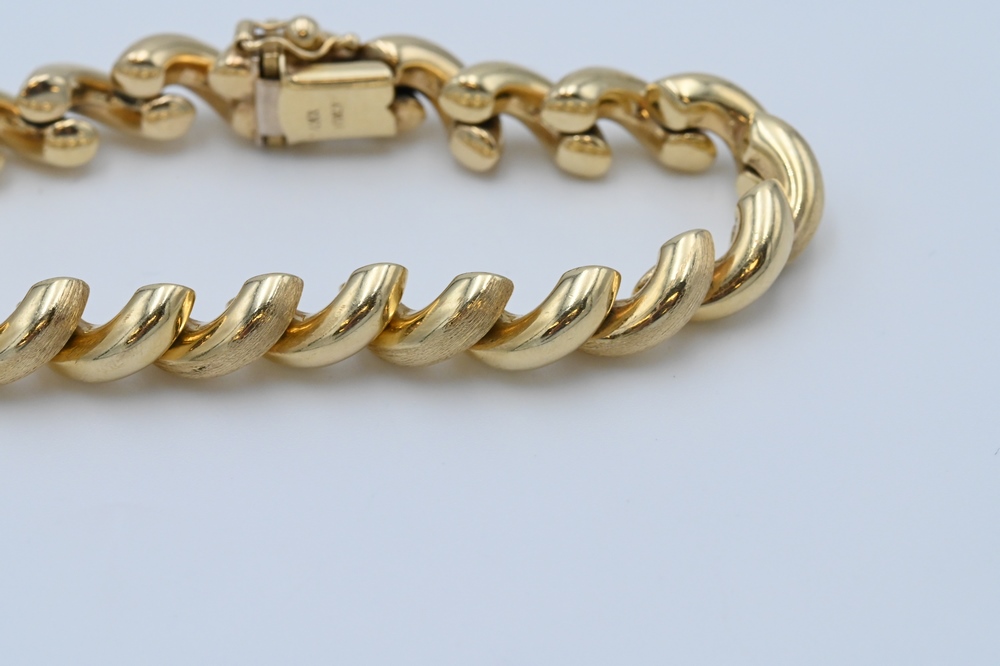 14 Karat Yellow Gold Bracelet, every other link having brushed design, length 7 1/8 inches, 22 grams.