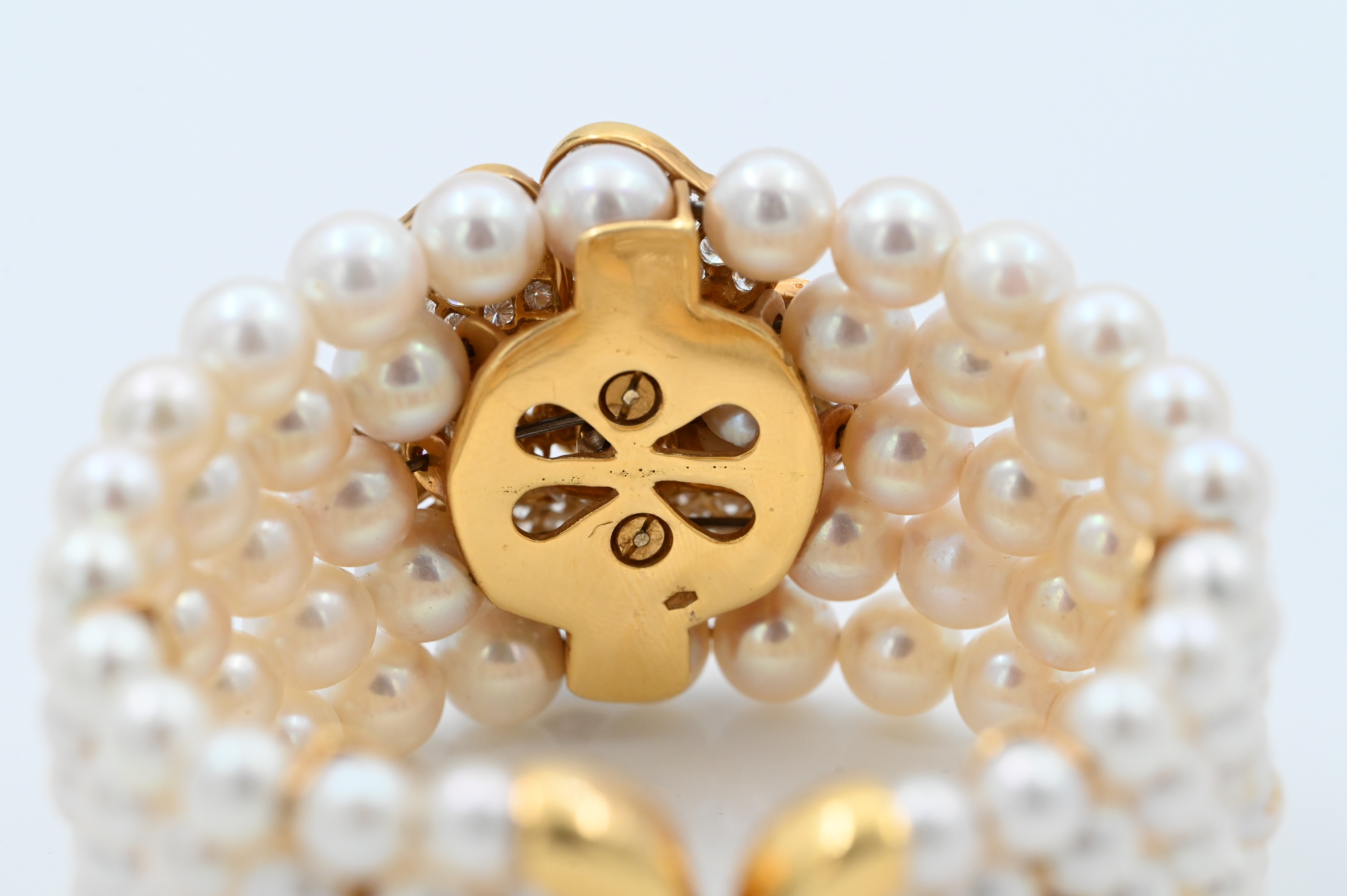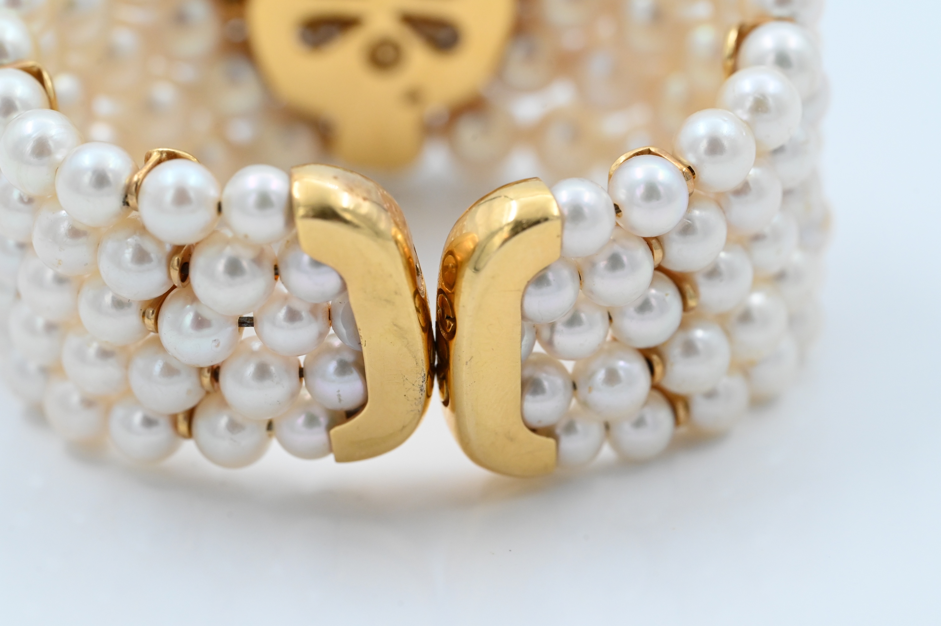 18K Yellow Gold, Diamond, and Pearl Cuff Bangle Bracelet