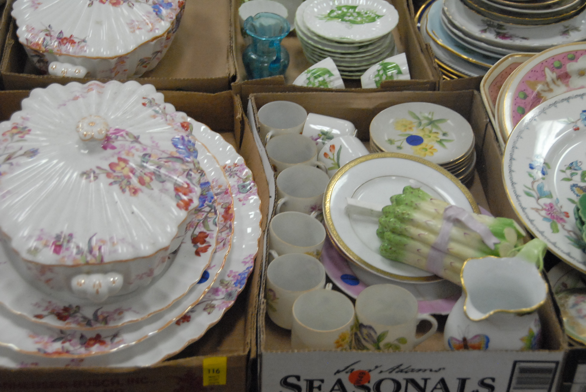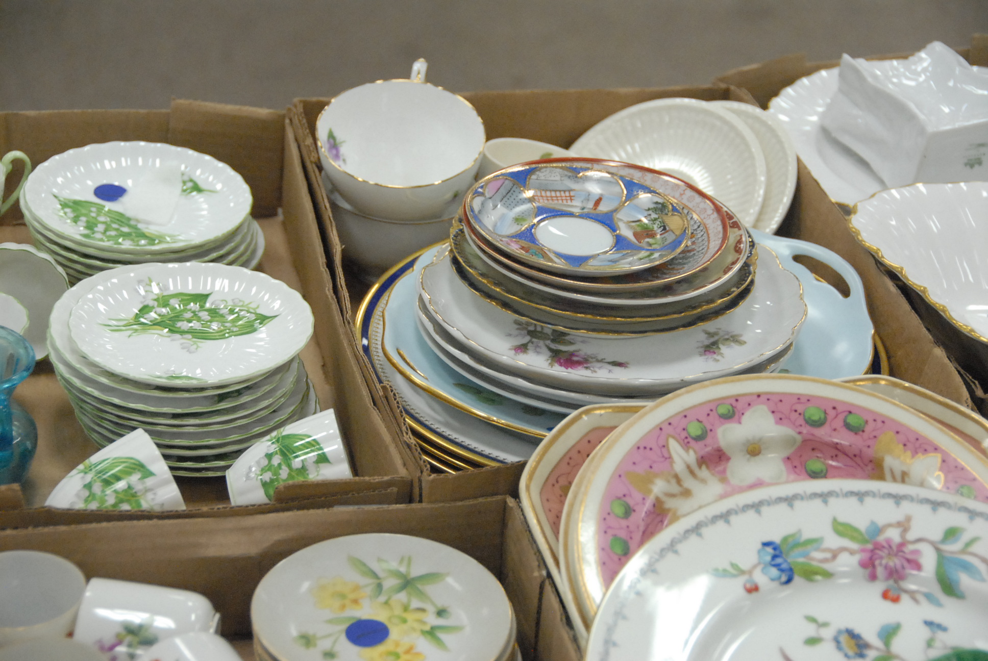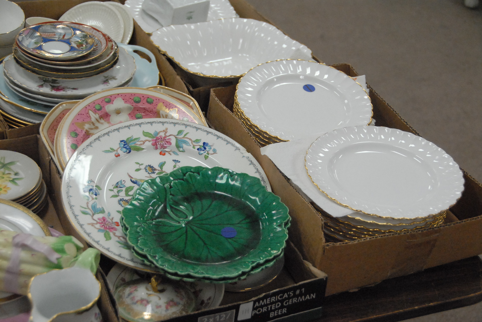 6 box lots to include Spode covered dishes, platters, Majolica, Shelley, and Spode plates.