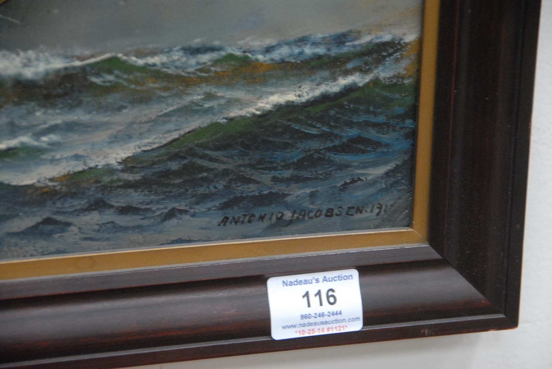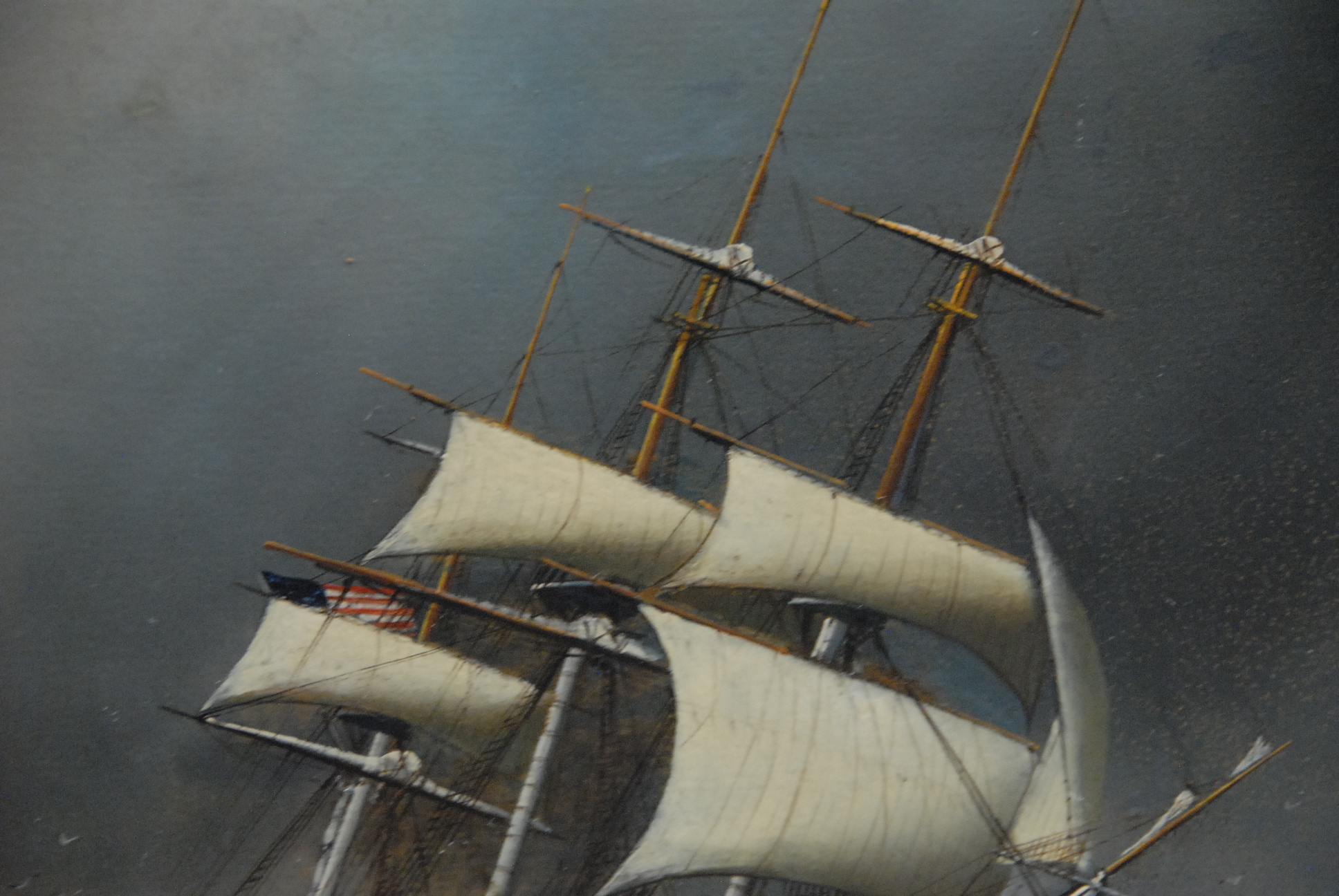 Lot 116: Antonio Nicolo Gasparao Jacobsen 1850-1921 AMERICAN CLIPPER SHIP oil on board signed lower right Antonio Jacobsen 19 11 3/4 x 20