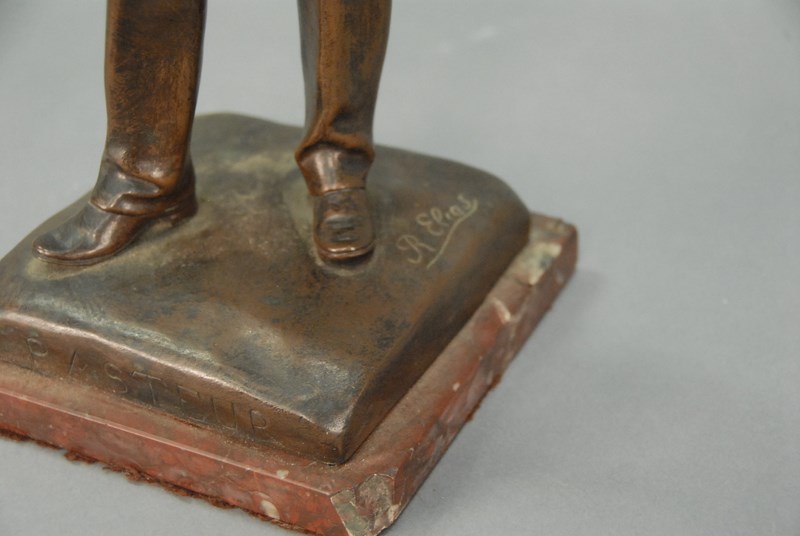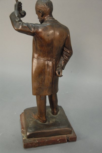 Lot 116: Bronze sculpture Louis Pasteur on rouge marble base signed R. Elias marble cracked ht. 16in.