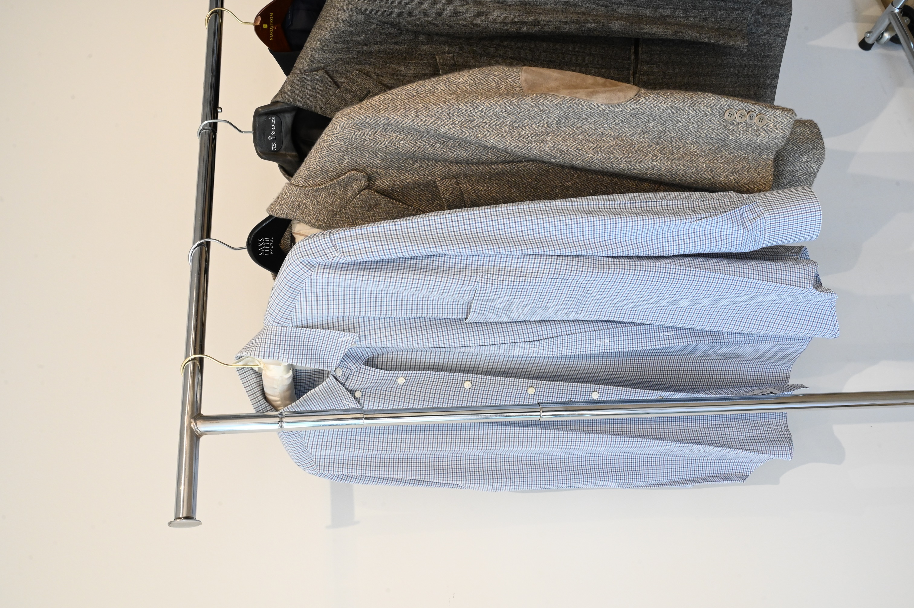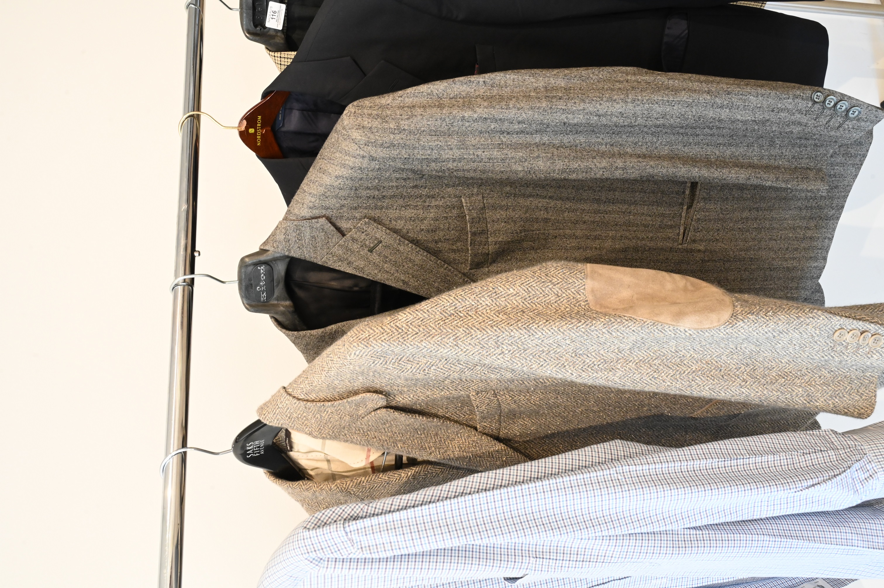 grey wool super 120’s jacket size 52, wool super 120’s size 52, black woven wool size 42/54, cashmere and silk size 48