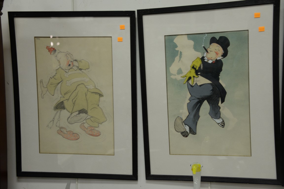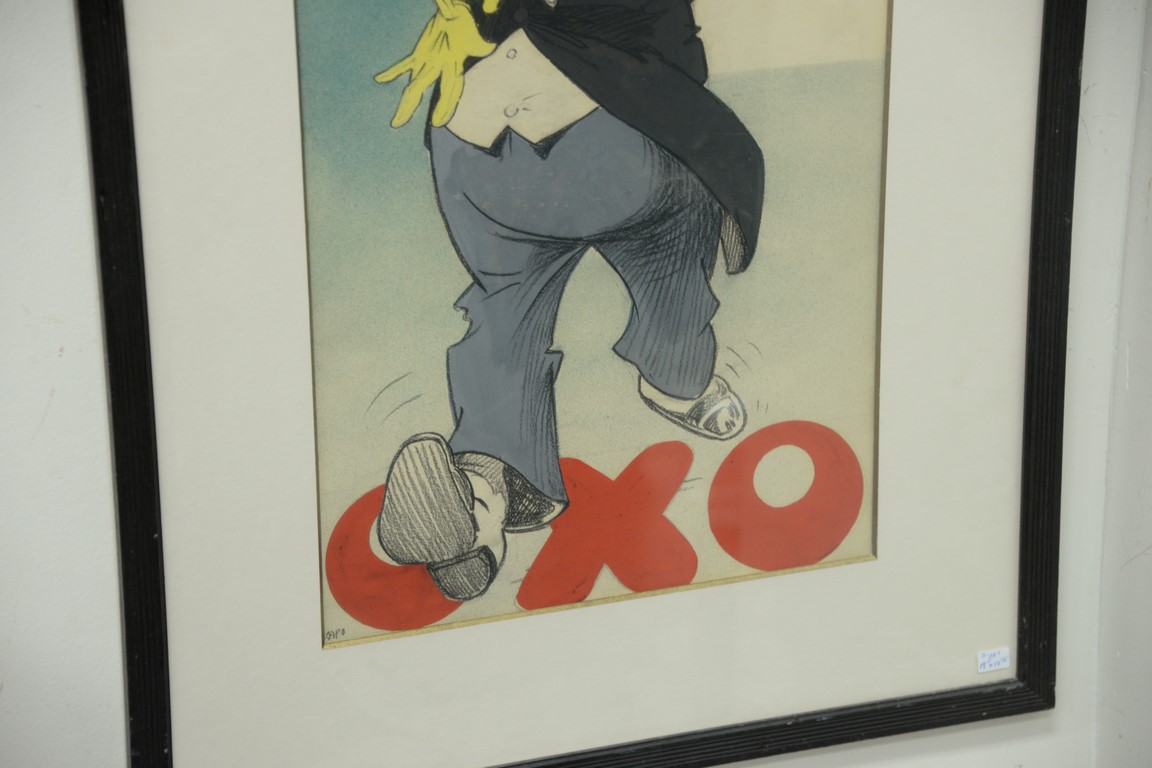 Lot 116: Set of five gouache and pencil Oxo advertising caricature drawings, designs for posters, marked Kapu. sight size 19 x 12 1/2 to 20…