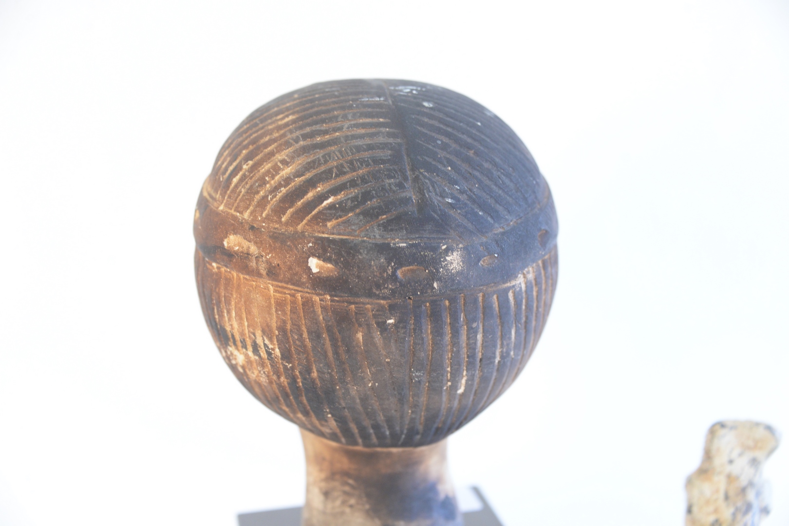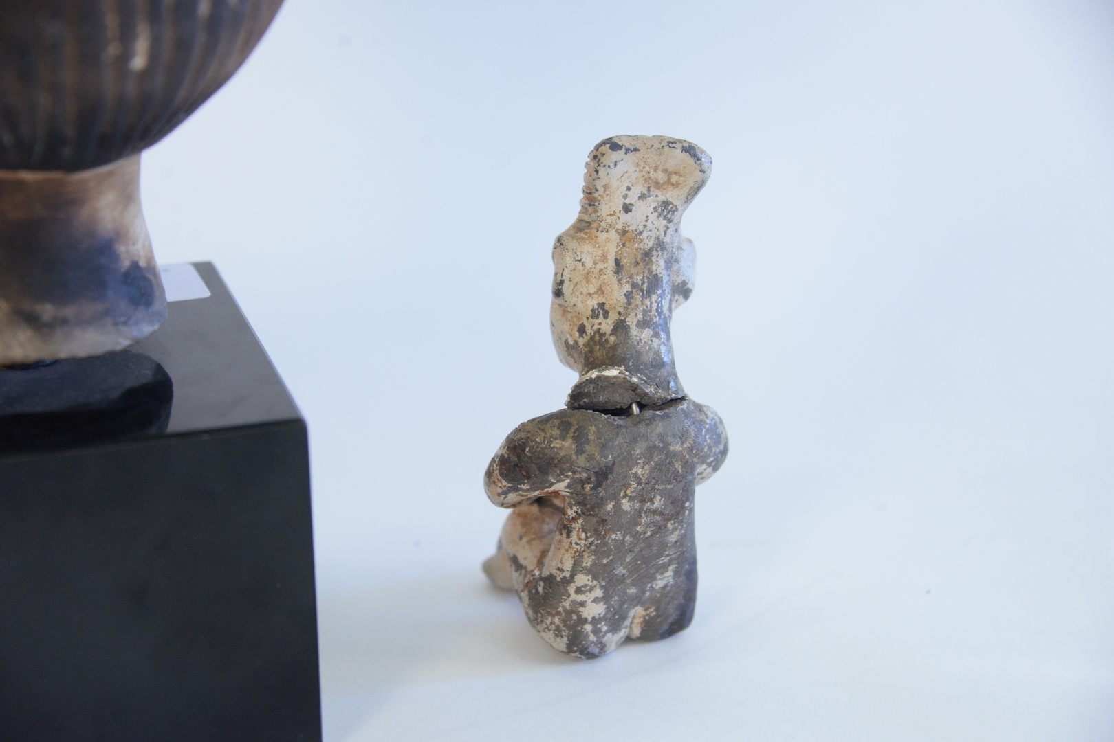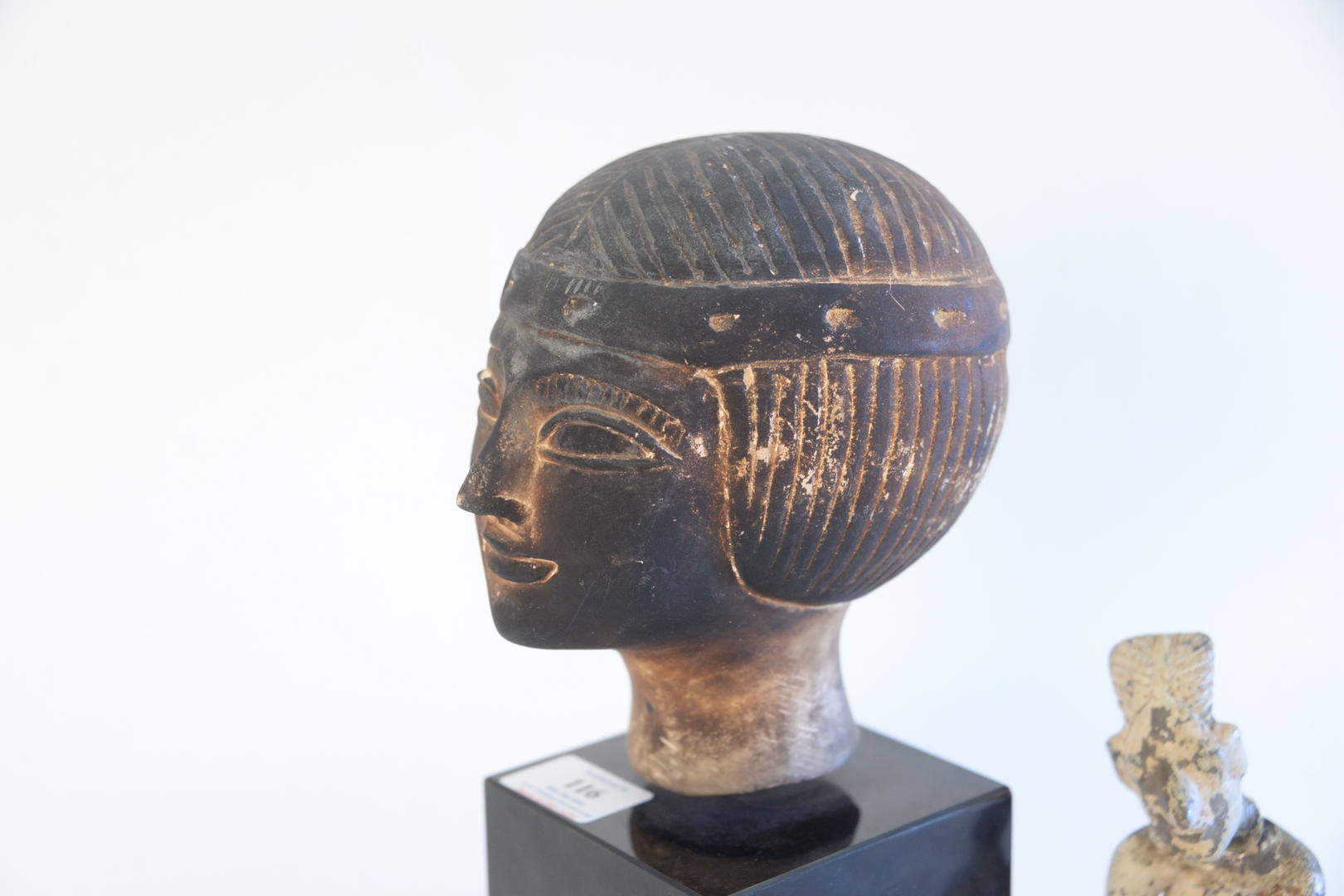 Lot 116: Two Piece Lot to include Egyptian Carved Stone Bust of a Pharaoh along with an early stone seated figure as is, height 10 inches …