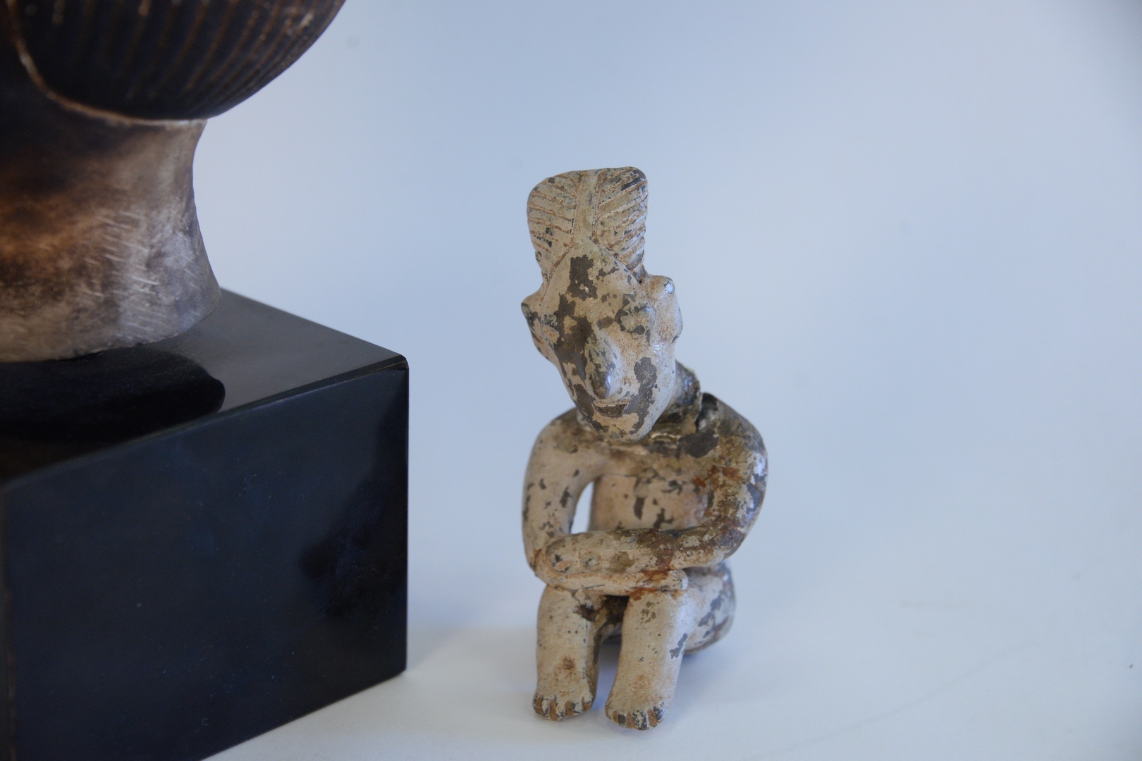 Two Piece Lot to include Egyptian Carved Stone Bust of a Pharaoh along with an early stone seated figure as is, height 10 inches Pharaoh, height 4 3/4 inches.
