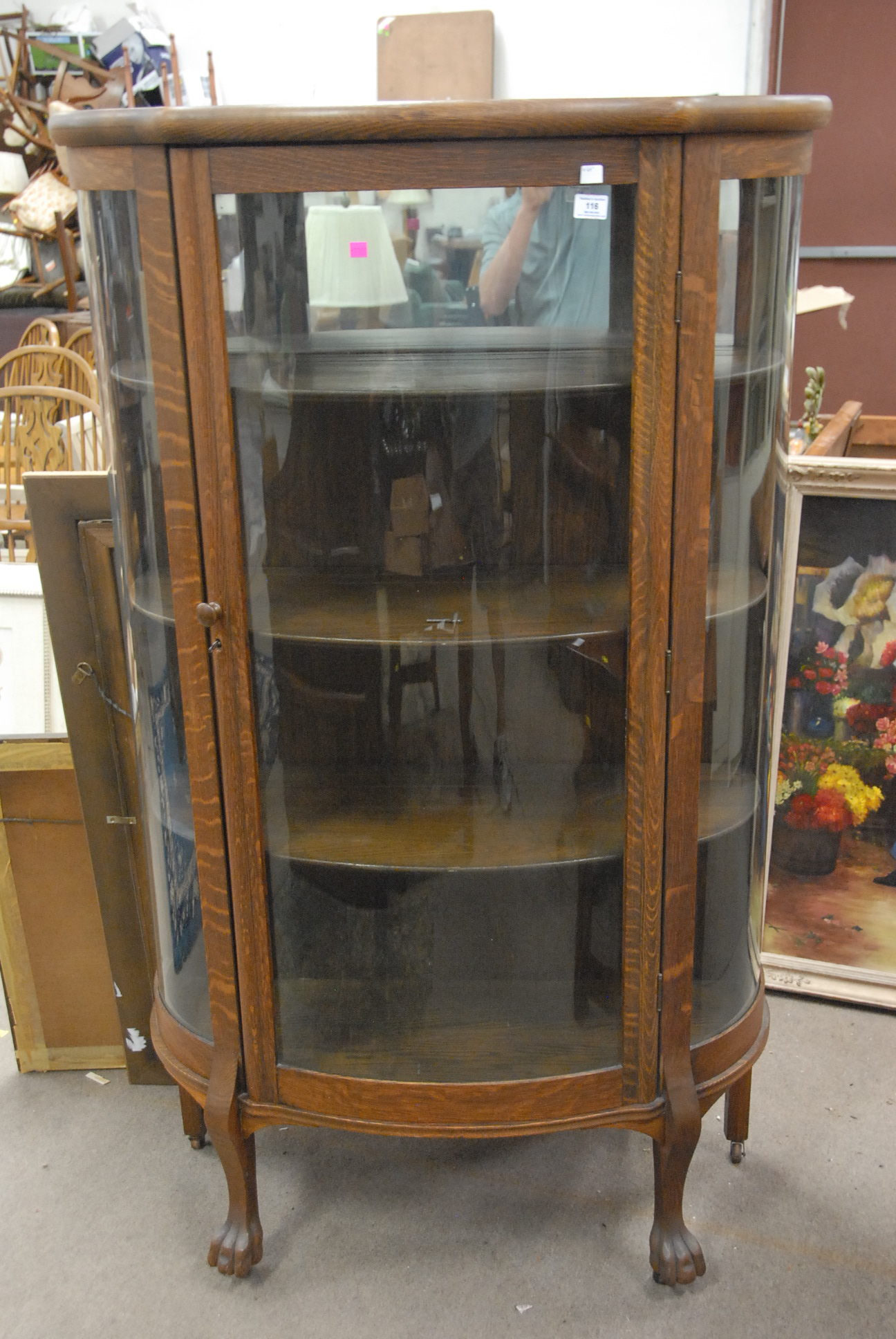 Victorian oak bowed glass china cabinet with claw feet, ht. 54in. wd. 38in.