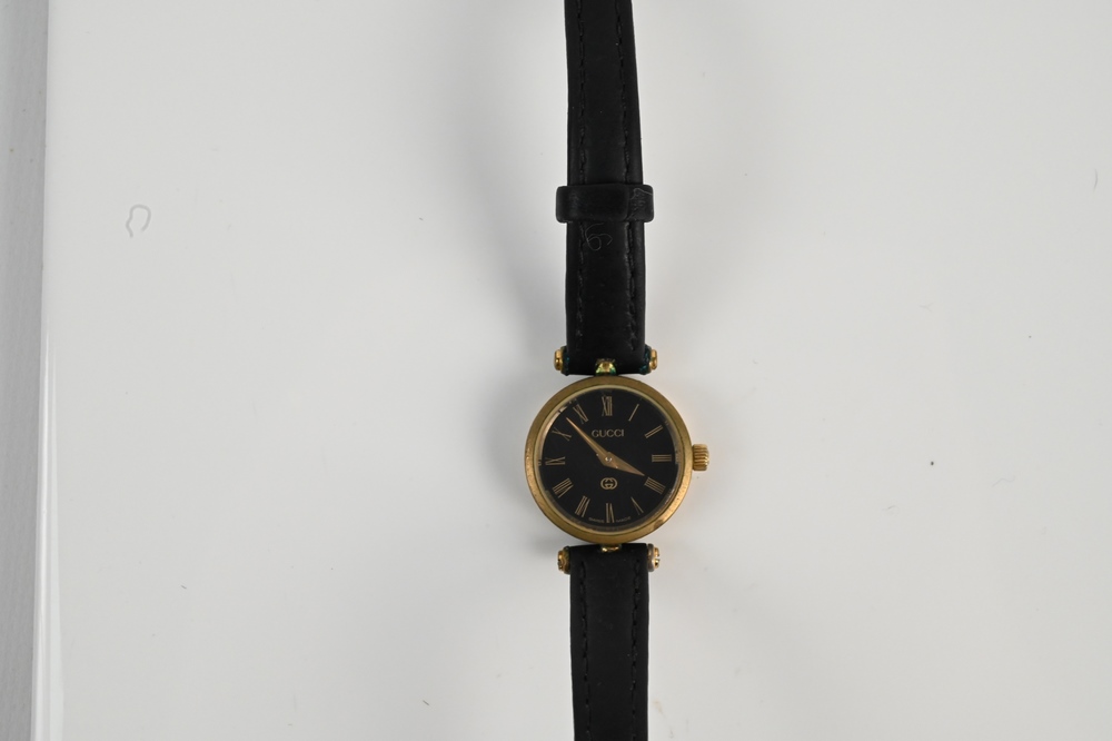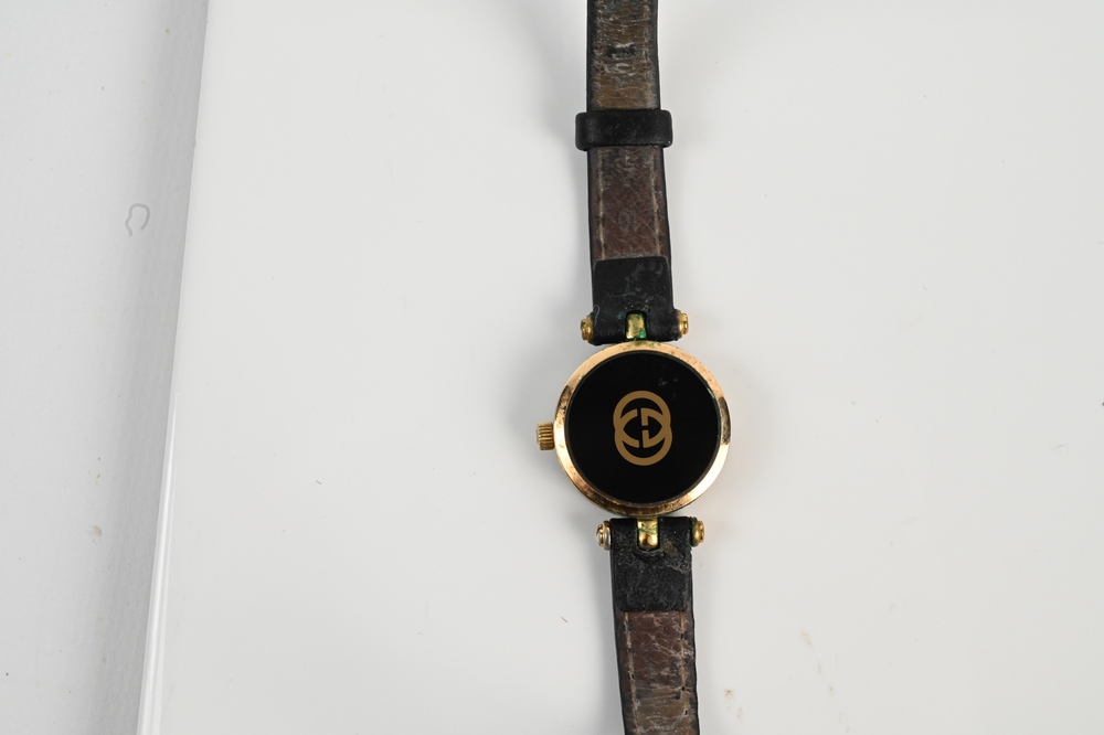 Lot 116: Vintage Gucci Black Enamel Stack Women’s Watch, some enamel missing, diameter 7/8 inches.