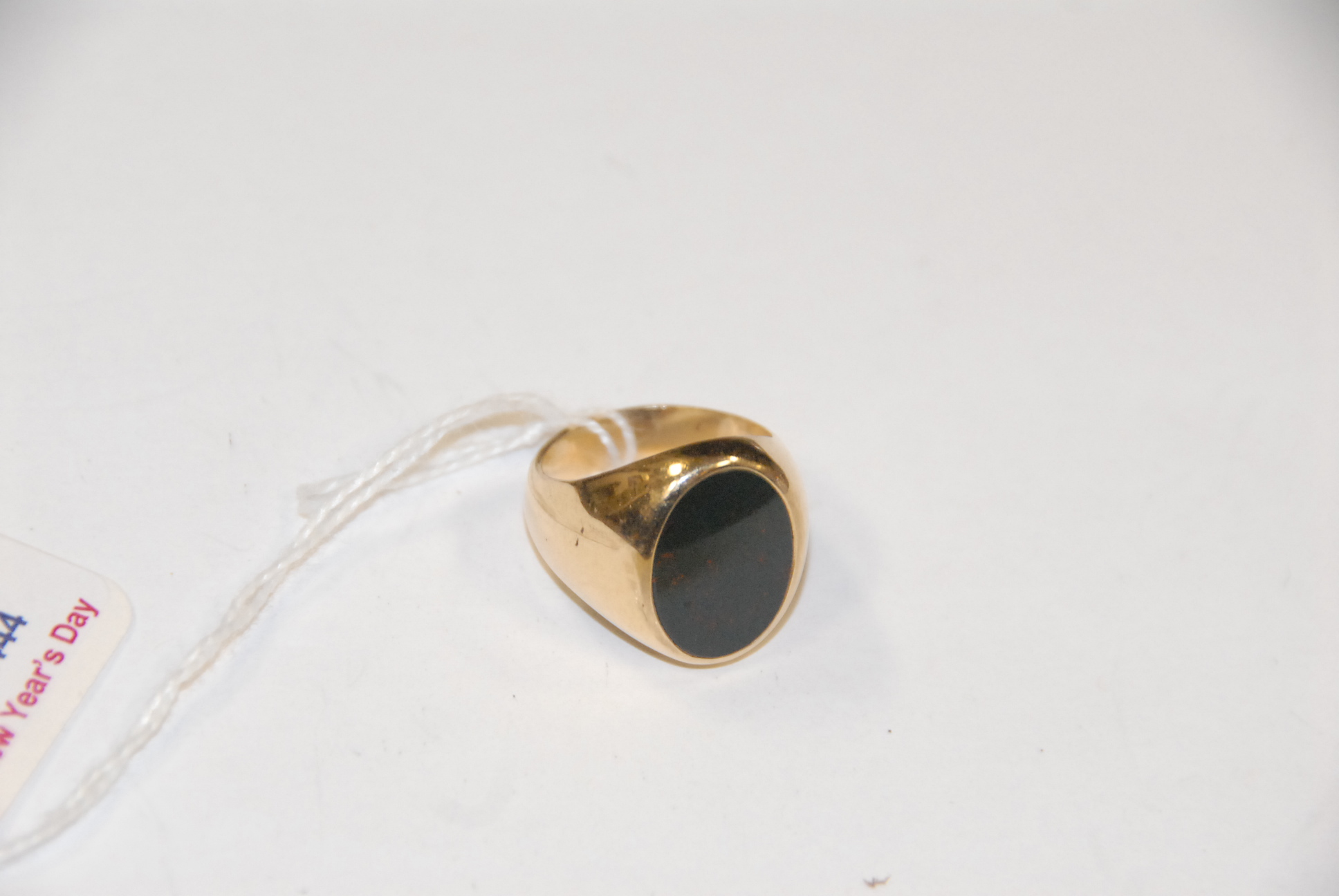 Tiffany & Company 14kt gold man’s ring set with oval stone, 16.1 grams.