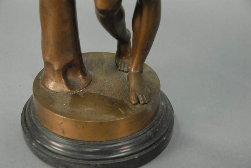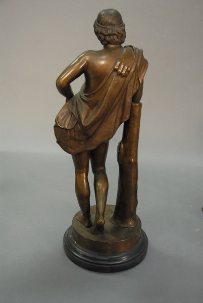 Lot 117: A. Rohrich Roma bronze sculpture of partially robed man marked A. Rohrich Roma. ht. 18 1/2in.